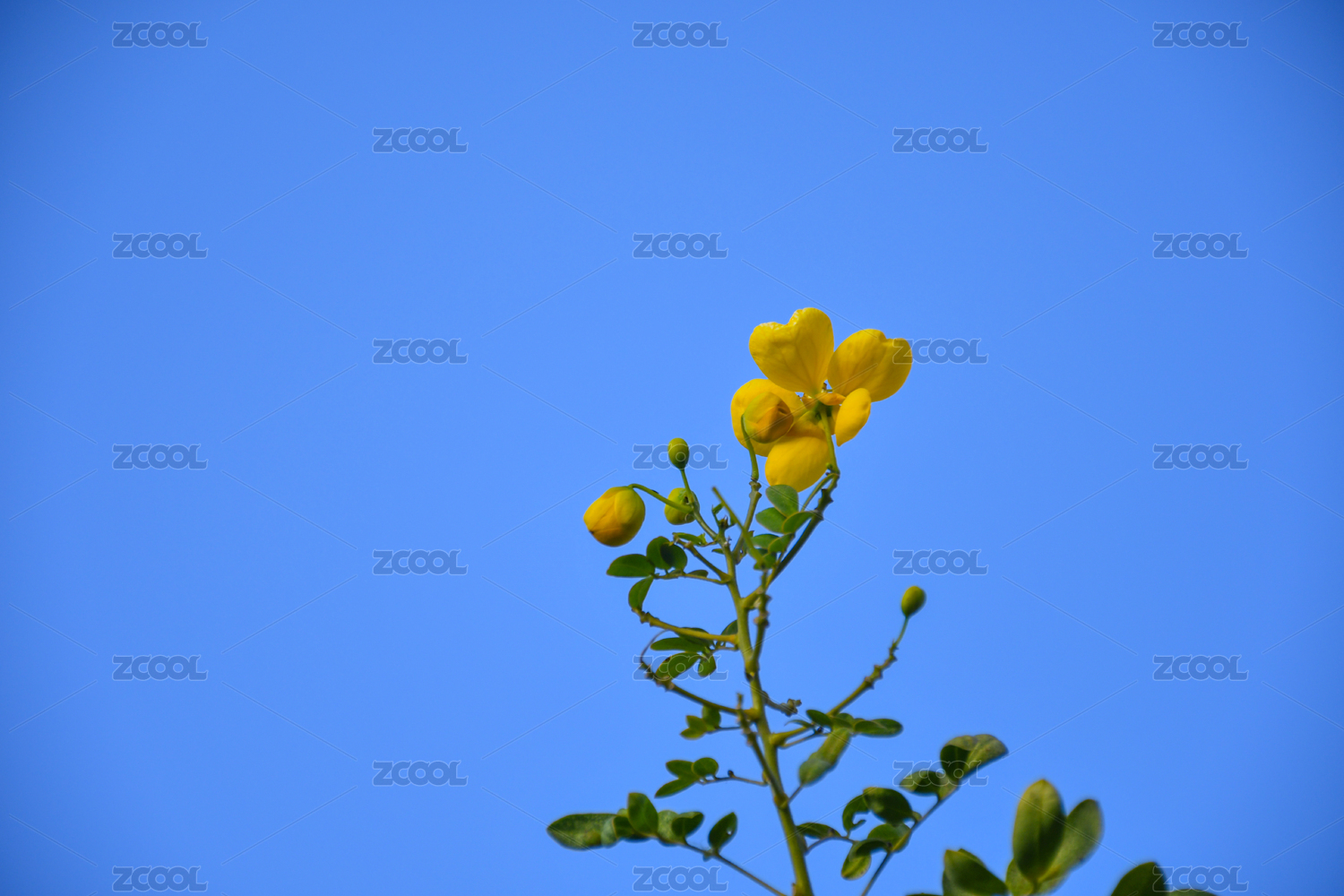 藍(lán)天映襯下的明艷小黃花