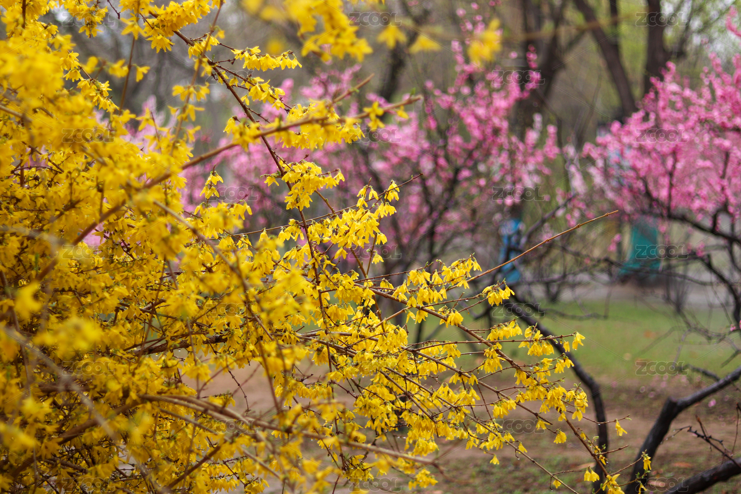 公園黃花粉花美景