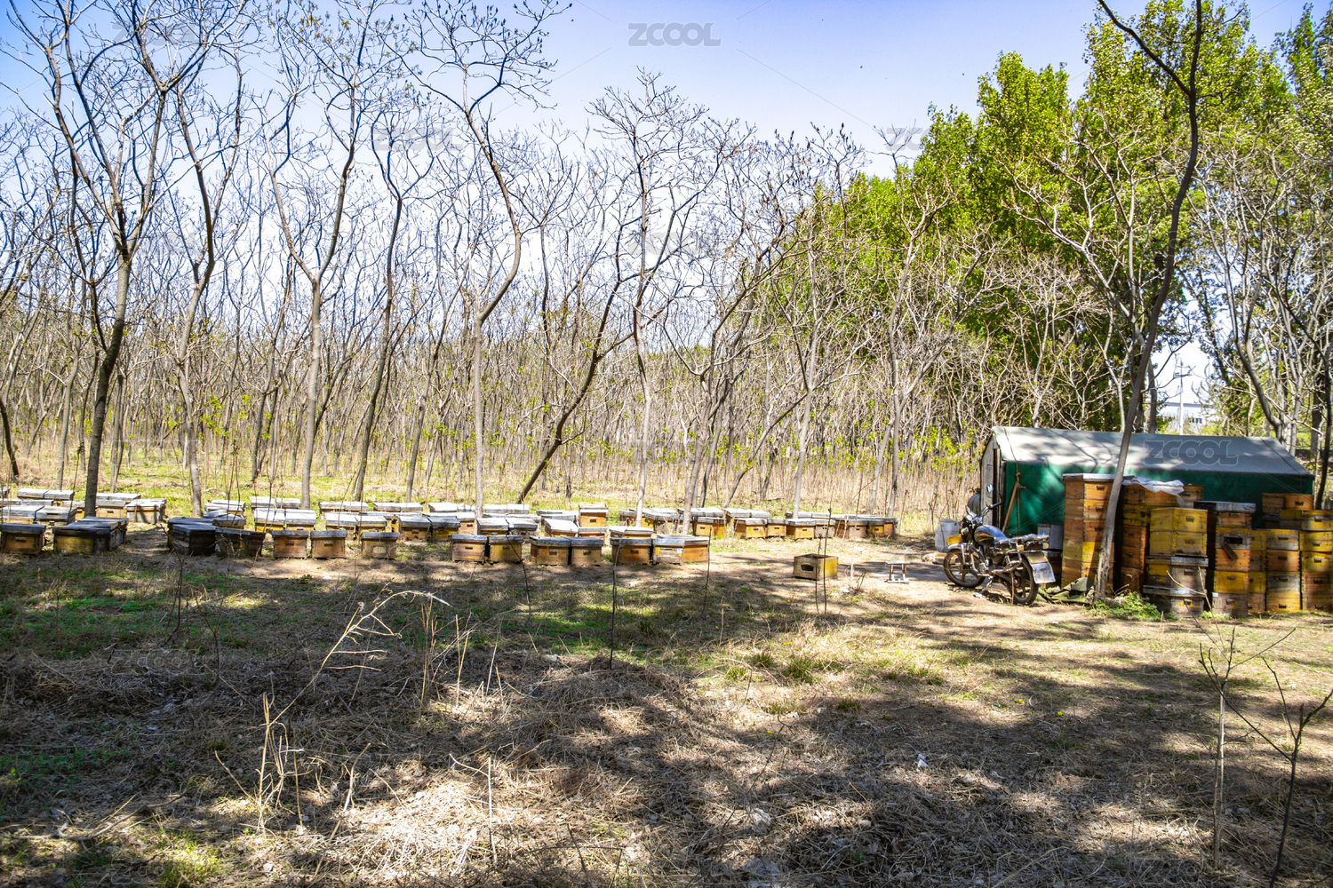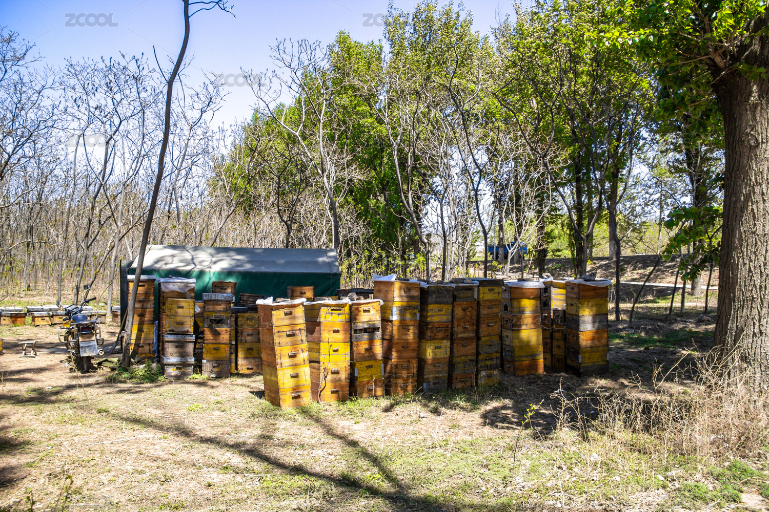樹林空地上的養(yǎng)蜂場