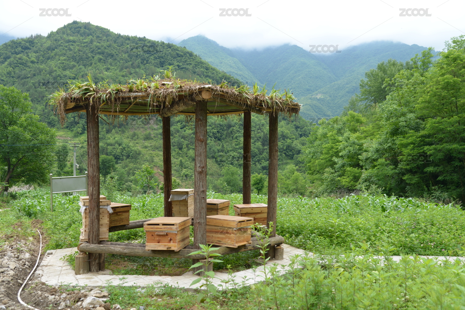 戶外大自然養(yǎng)蜂場蜜蜂蜂箱