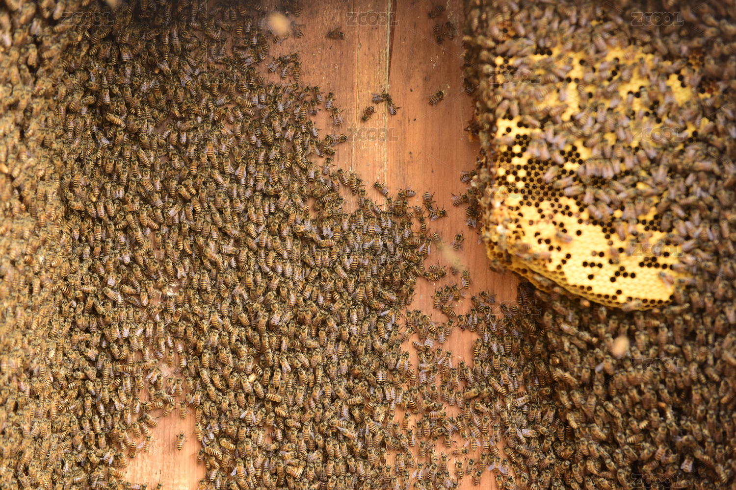 養(yǎng)蜂場里的蜜蜂蜂巢蜂蠟特寫