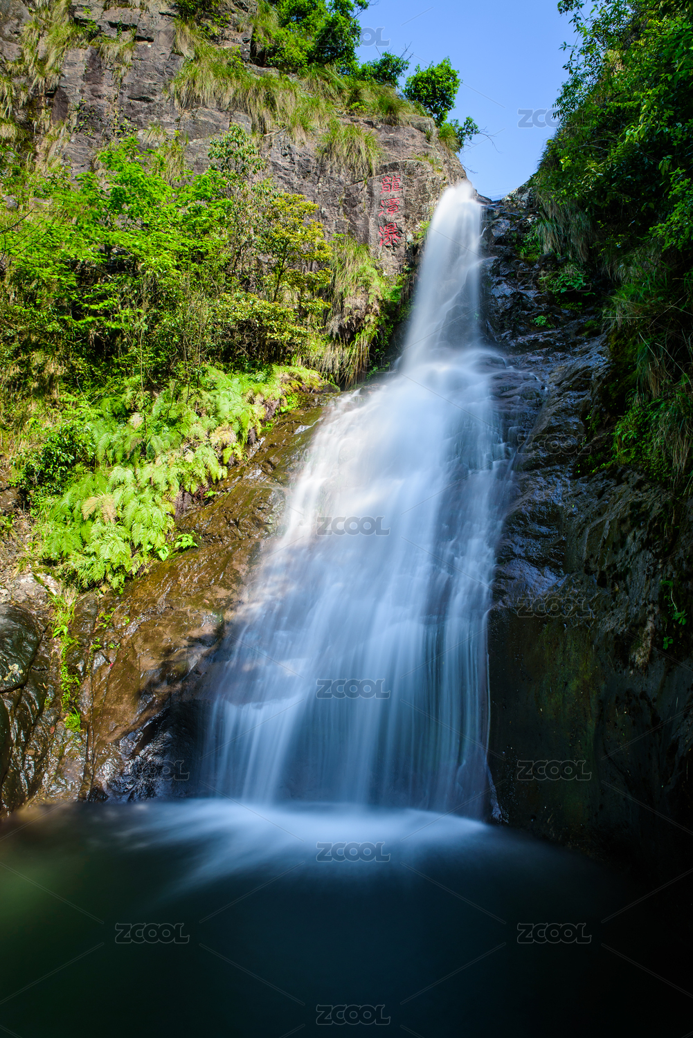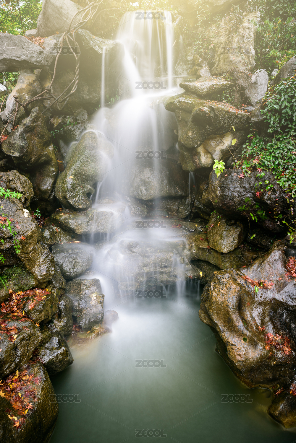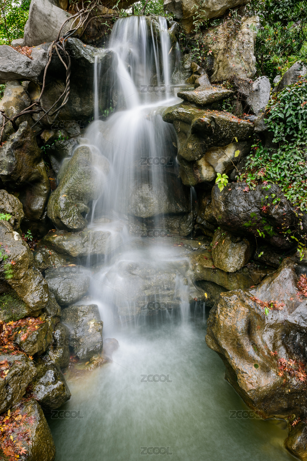 山谷里的溪水瀑布