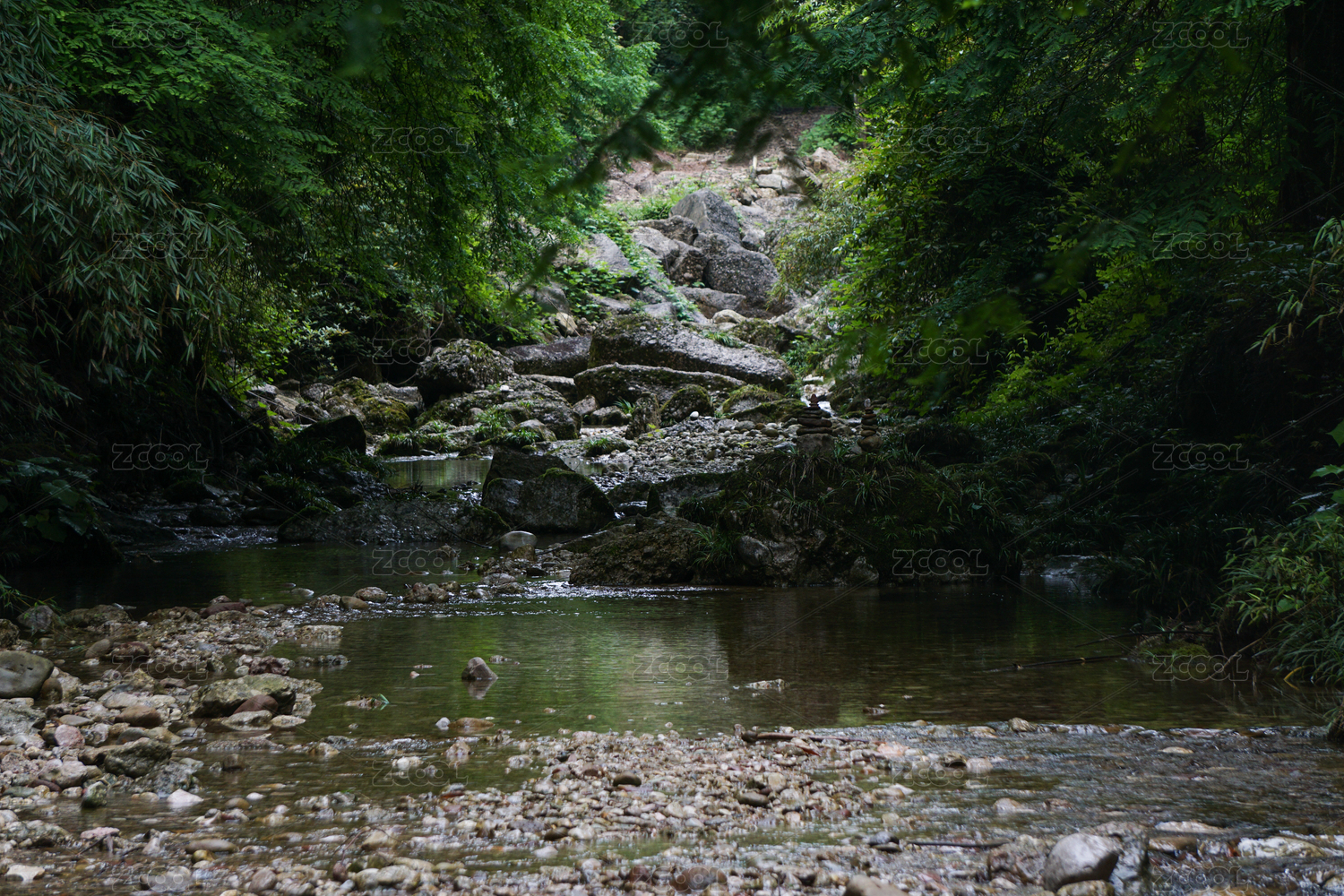 綠色森林里的清澈溪水