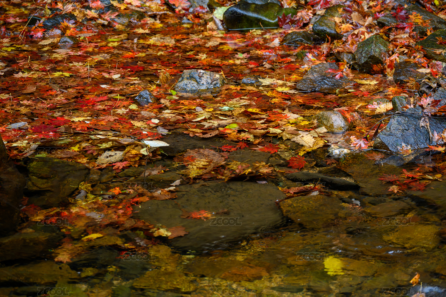 沈陽本溪老邊溝 秋天溪水落滿紅色楓葉