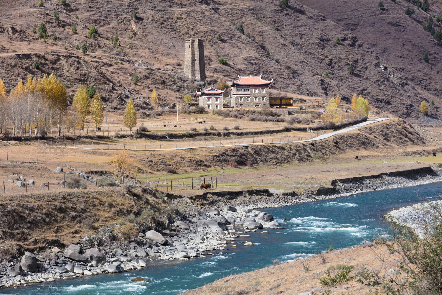 四川甘孜州新都橋鎮(zhèn)鄉(xiāng)村秋色