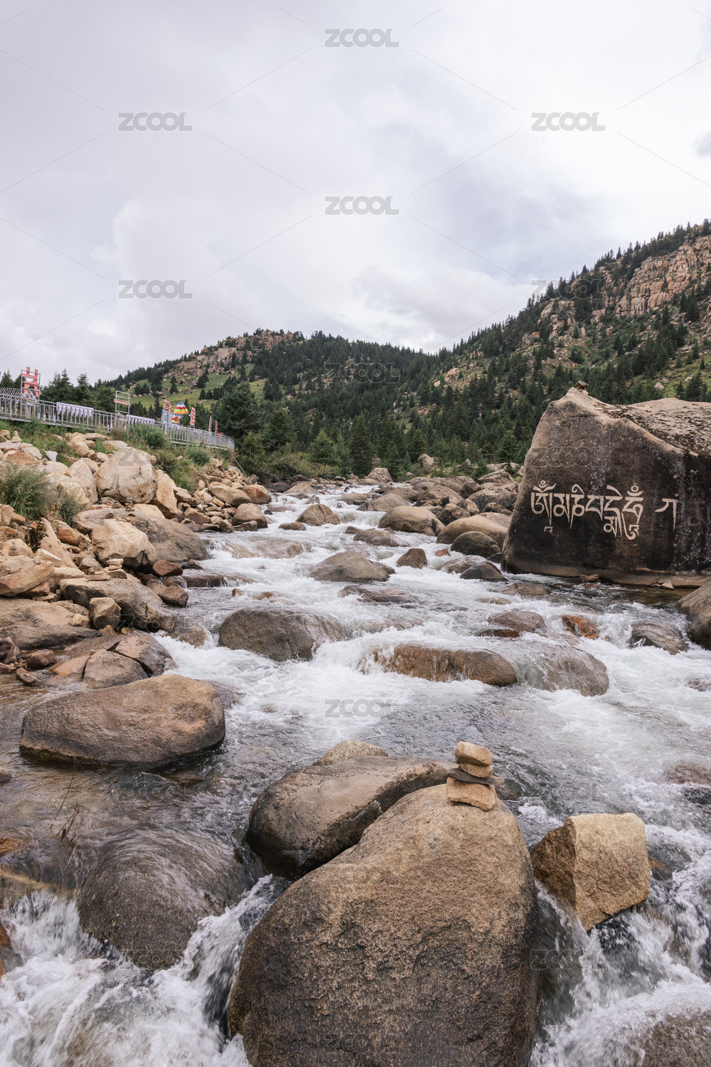 四川甘孜州稻城縣石河公園巖石間的流水