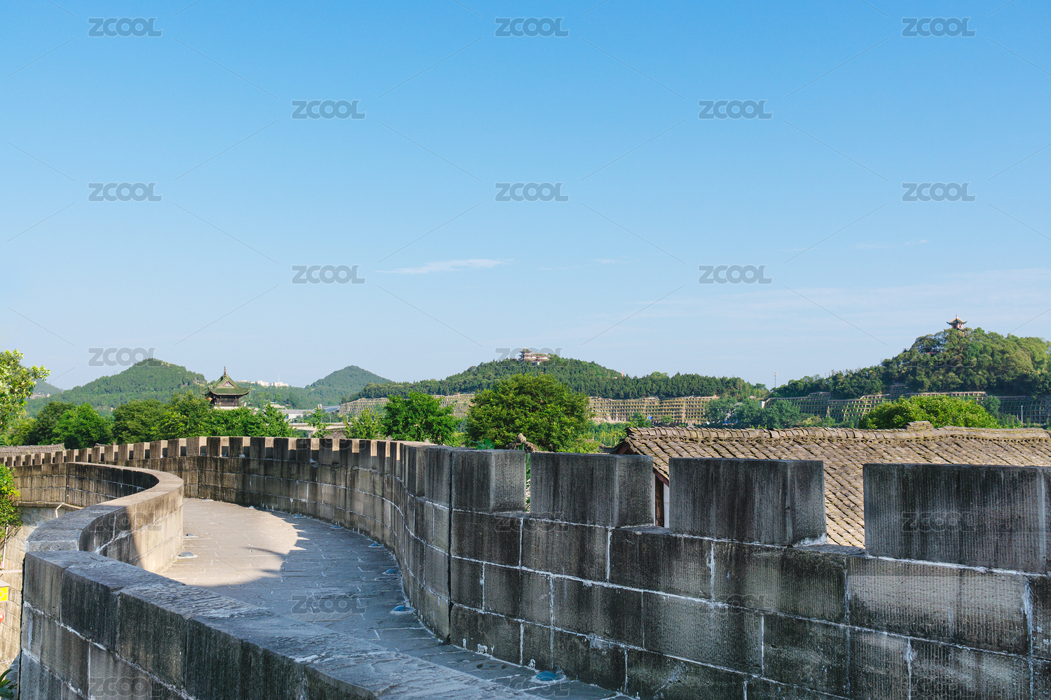 中國(guó)四川省閬中市閬中古城蜿蜒的古城墻