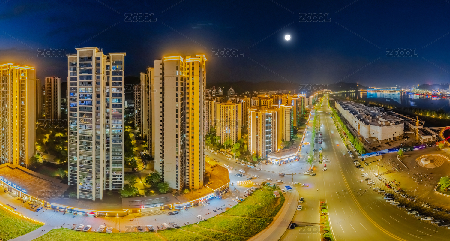 中國(guó)四川省南部縣夜晚月亮新城區(qū)高樓建筑