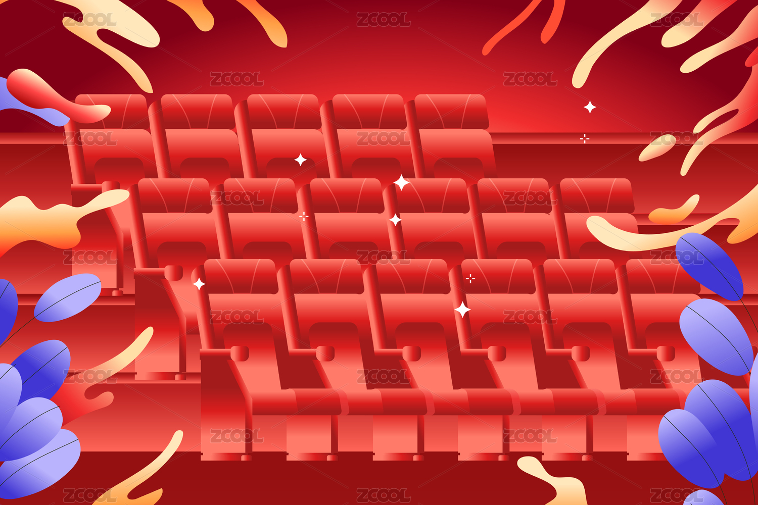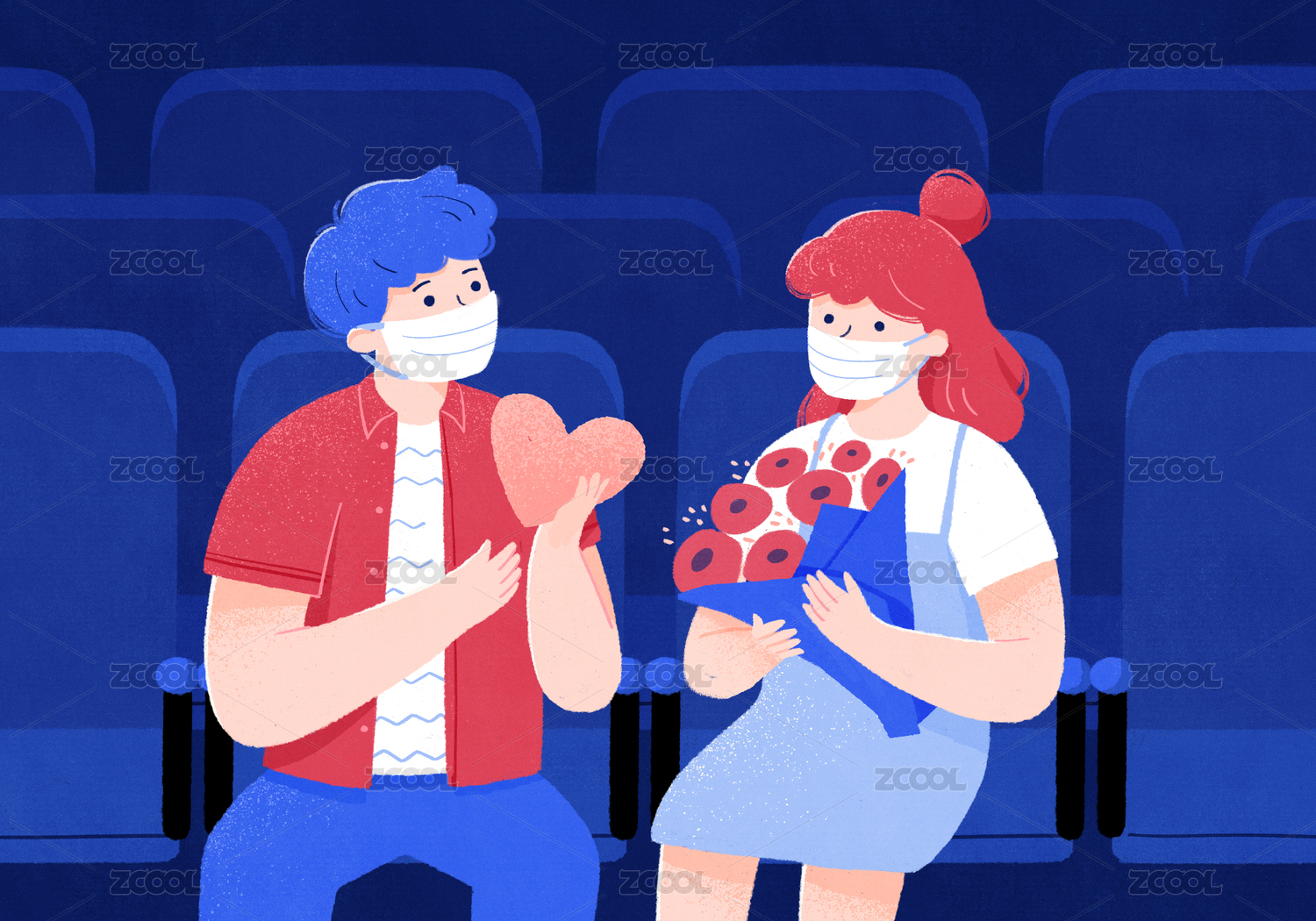 影院恢復(fù)營(yíng)業(yè),情侶分開隔座看電影插畫背景