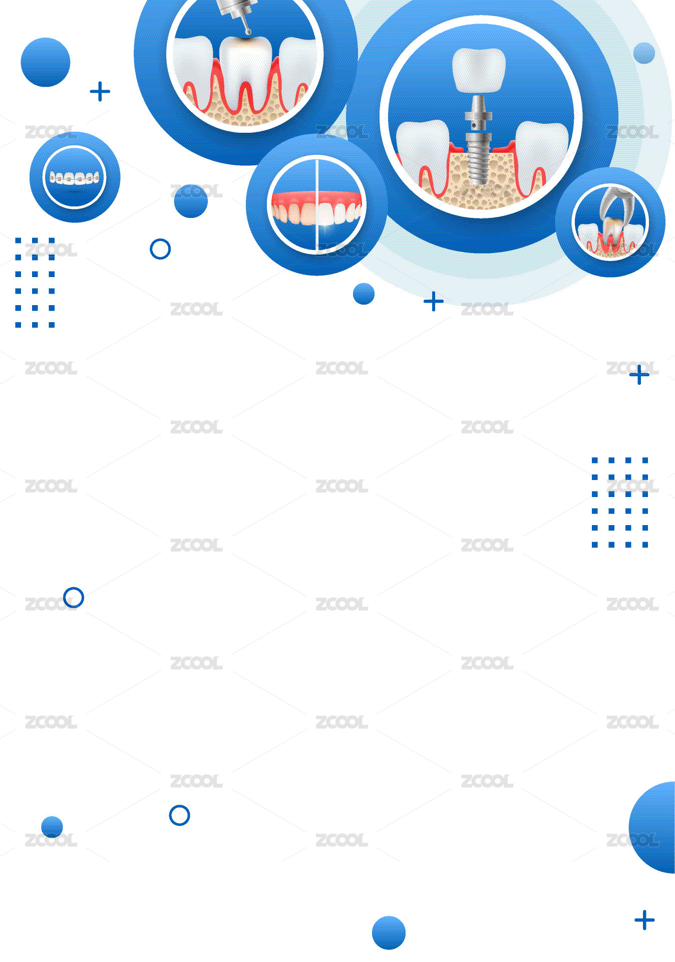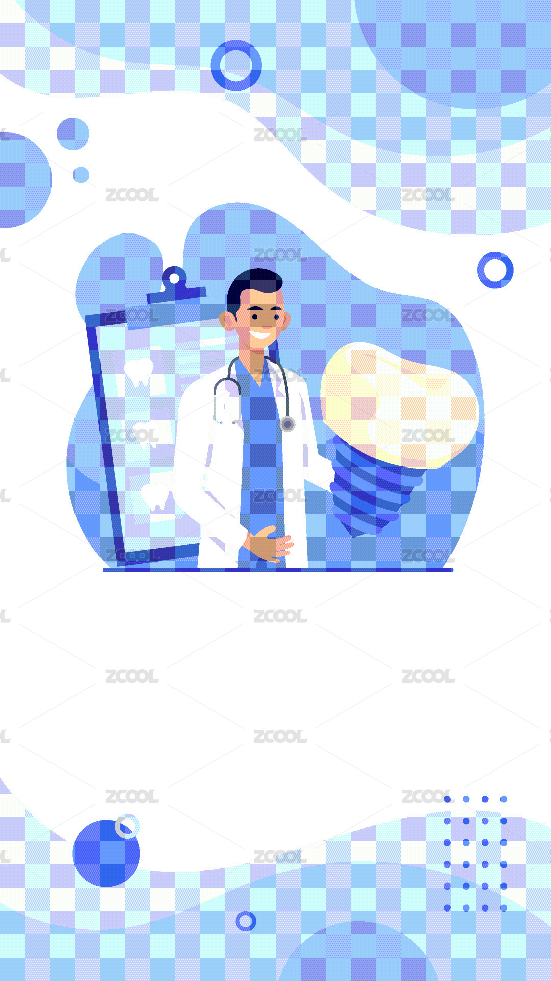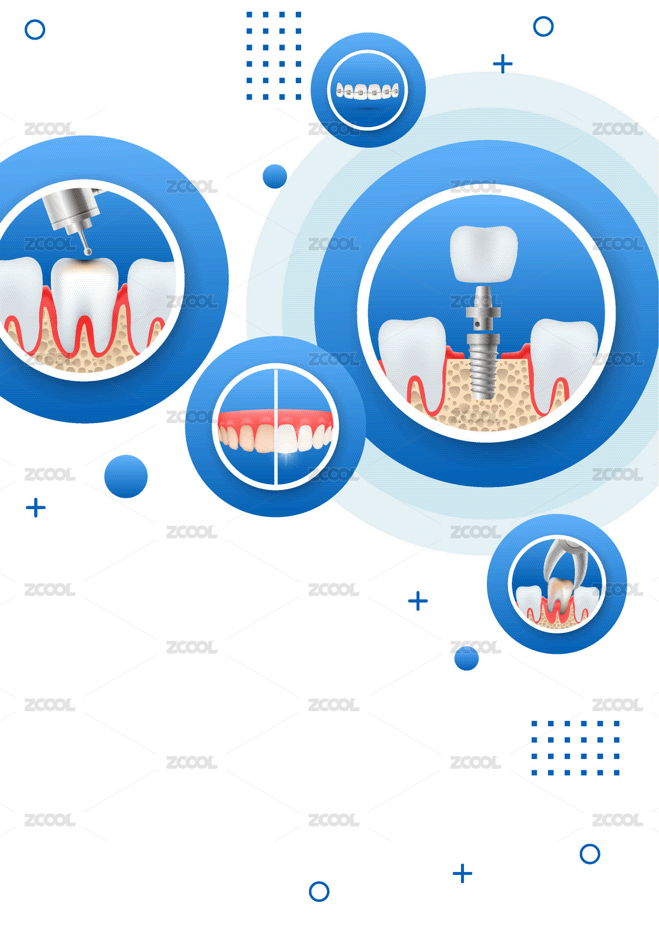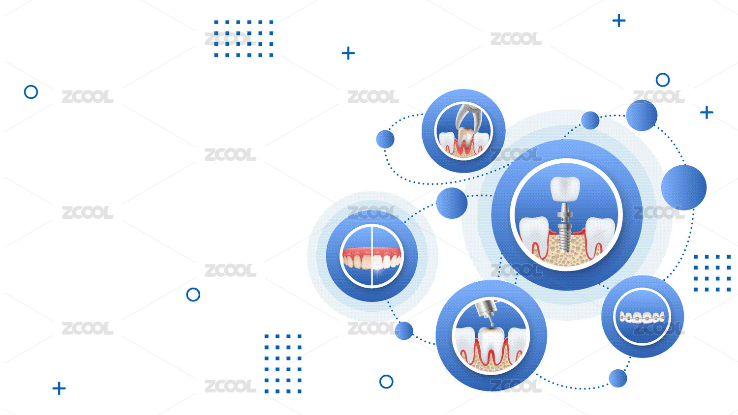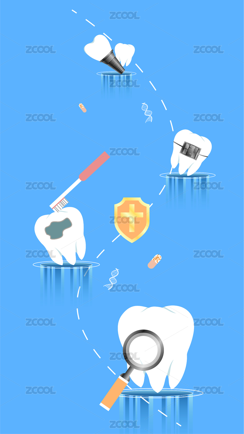藍色系牙科護牙項目矢量插畫