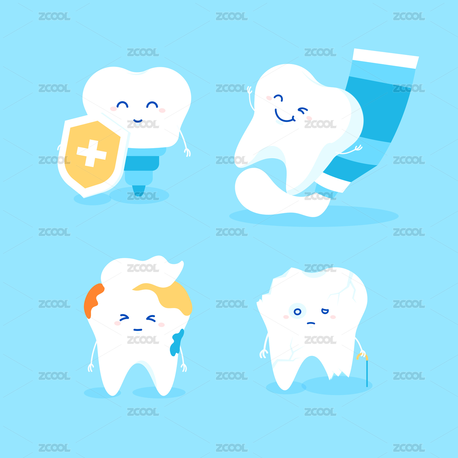 不同狀態(tài)的牙齒矢量插畫
