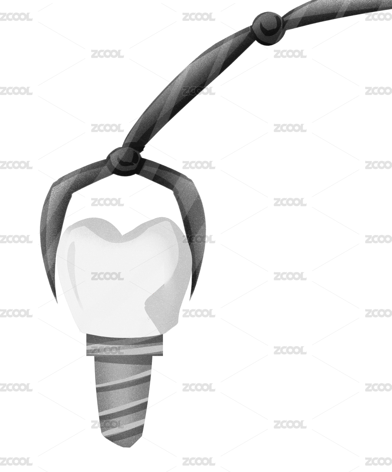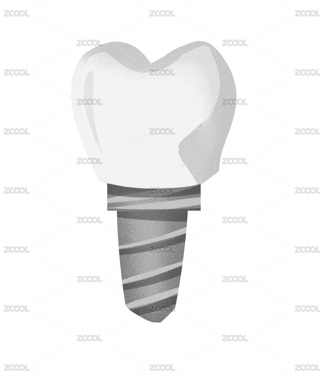 扁平風格一顆種植牙齒陶瓷牙插畫元素