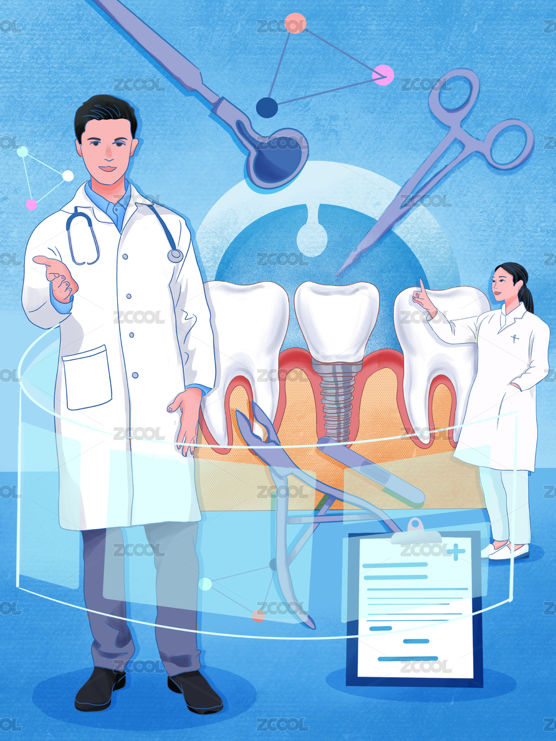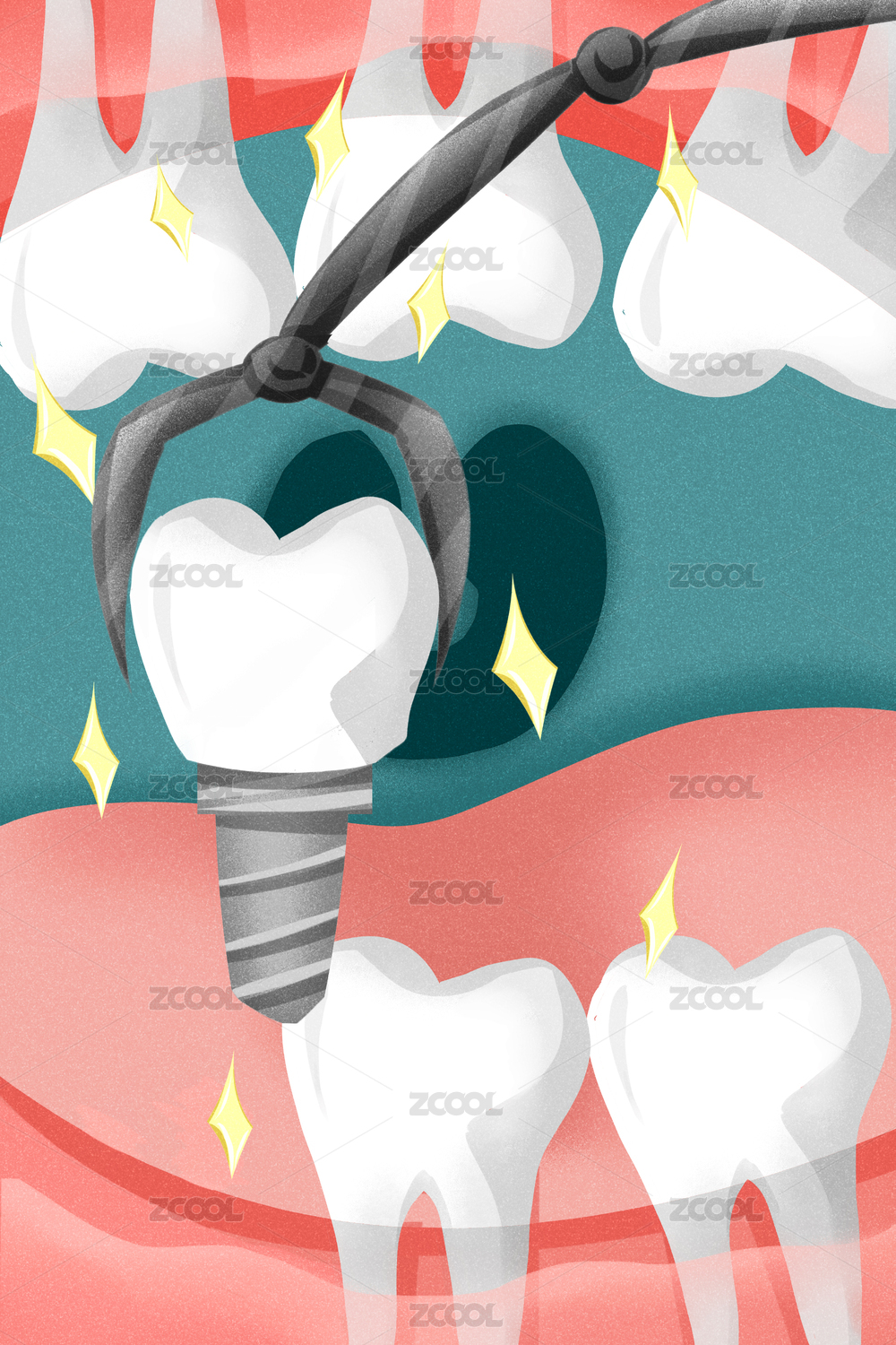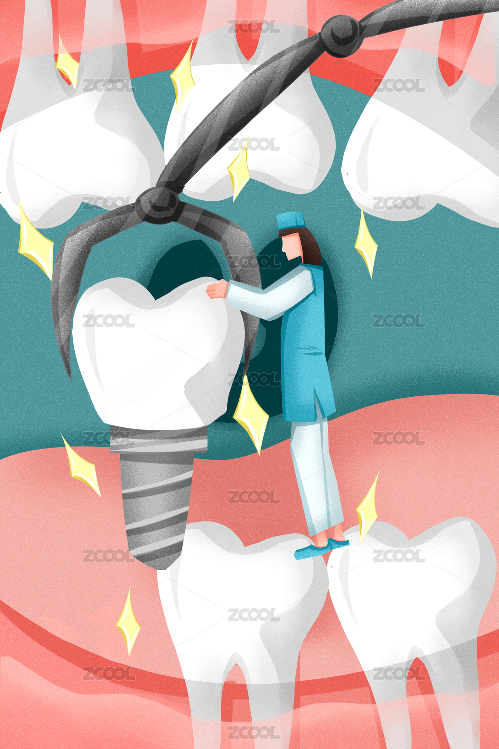 醫(yī)療健康牙醫(yī)牙齒種植插畫