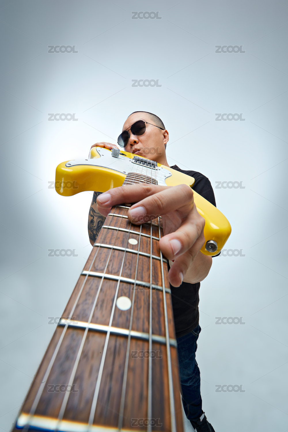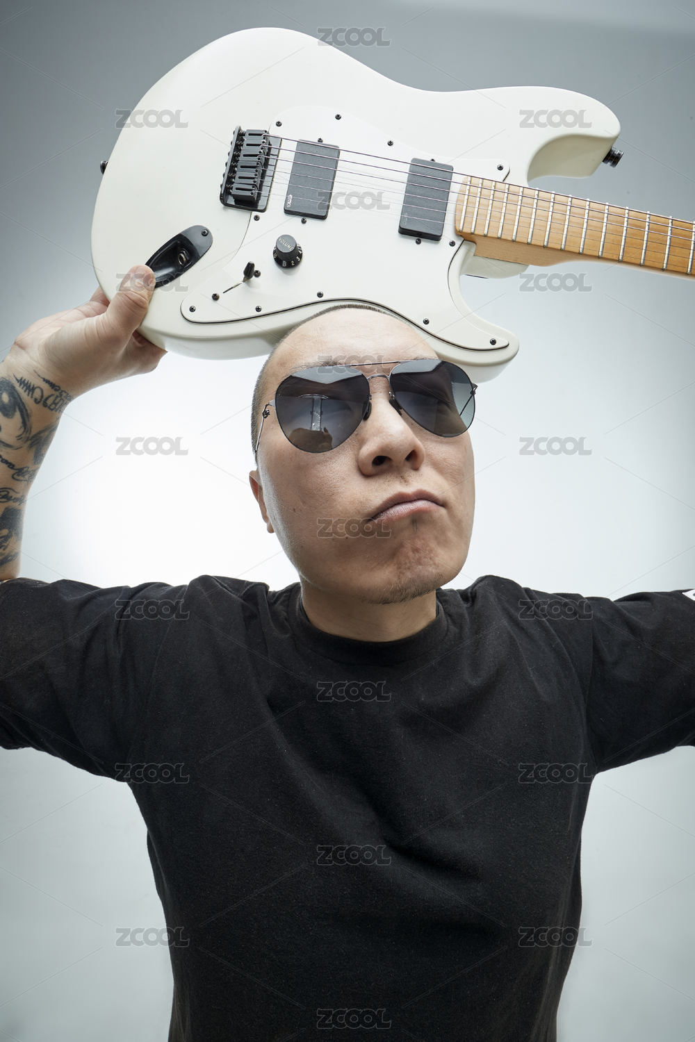 手持電吉他展示演奏的亞洲男性搖滾樂手人像