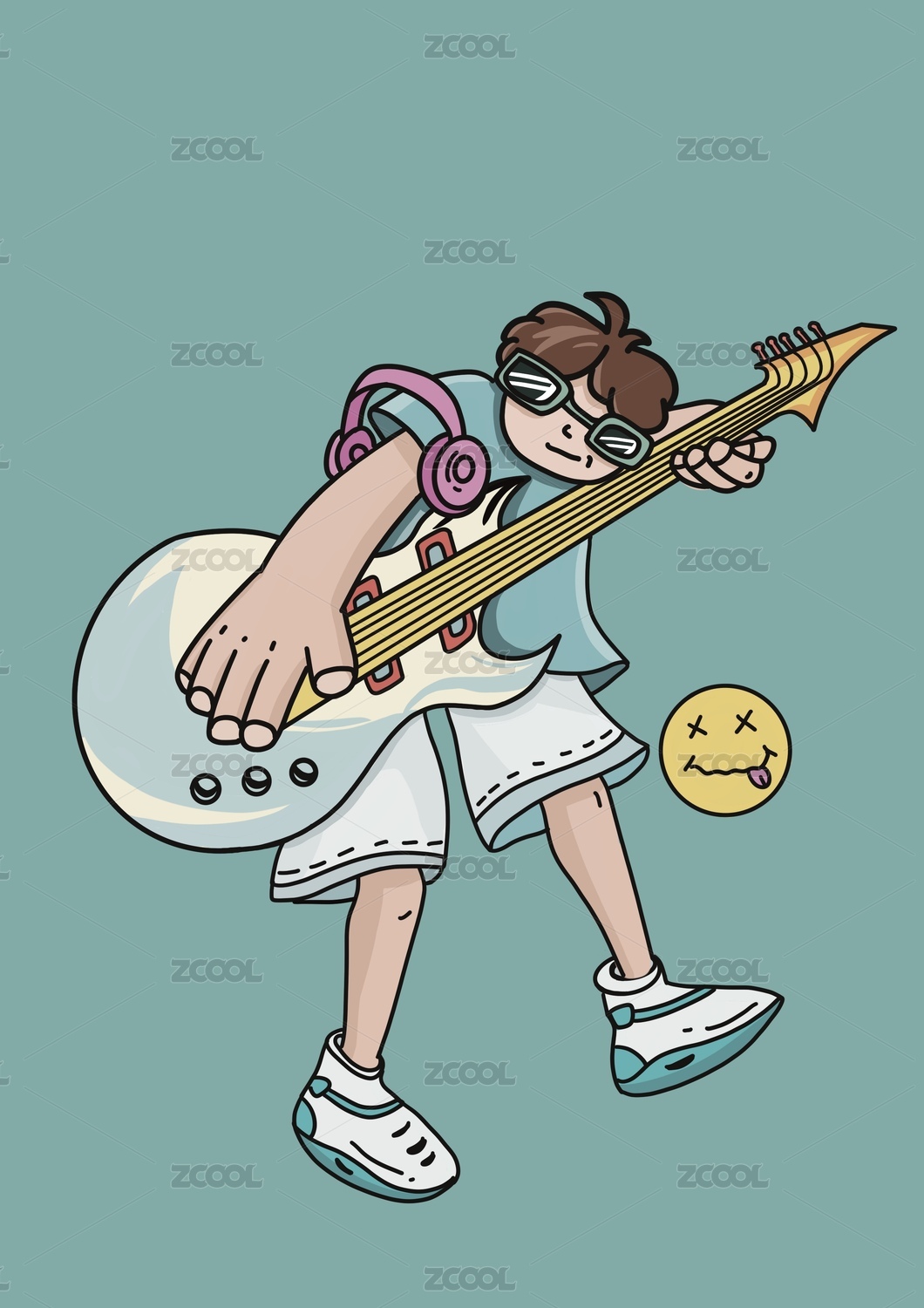 音樂節(jié)酷男孩吉他手彈電吉他插畫