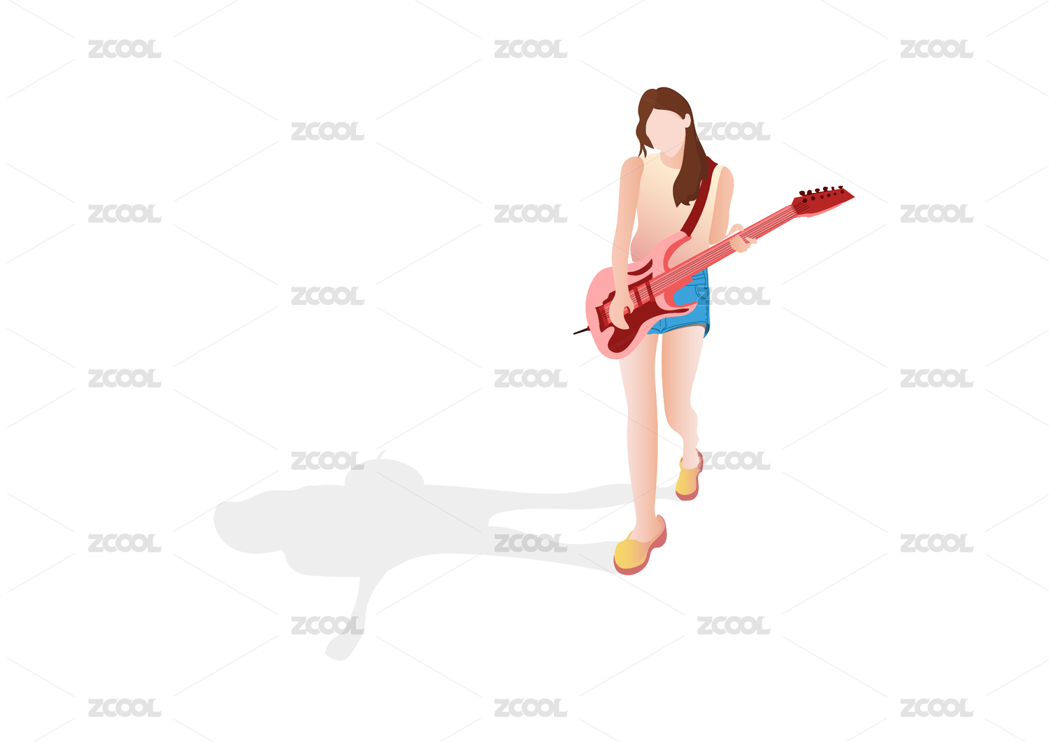 玩電吉他的時尚長腿美麗少女白色純背景元素