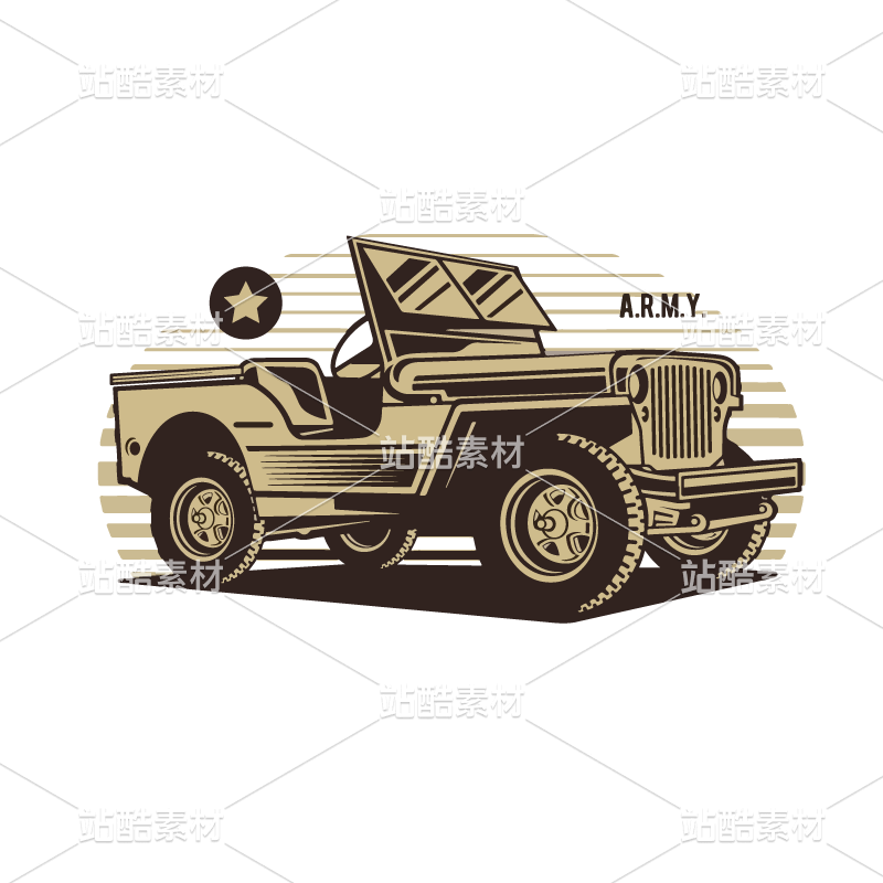 軍事軍迷文化主題矢量元素復(fù)古吉普車越野車突擊車