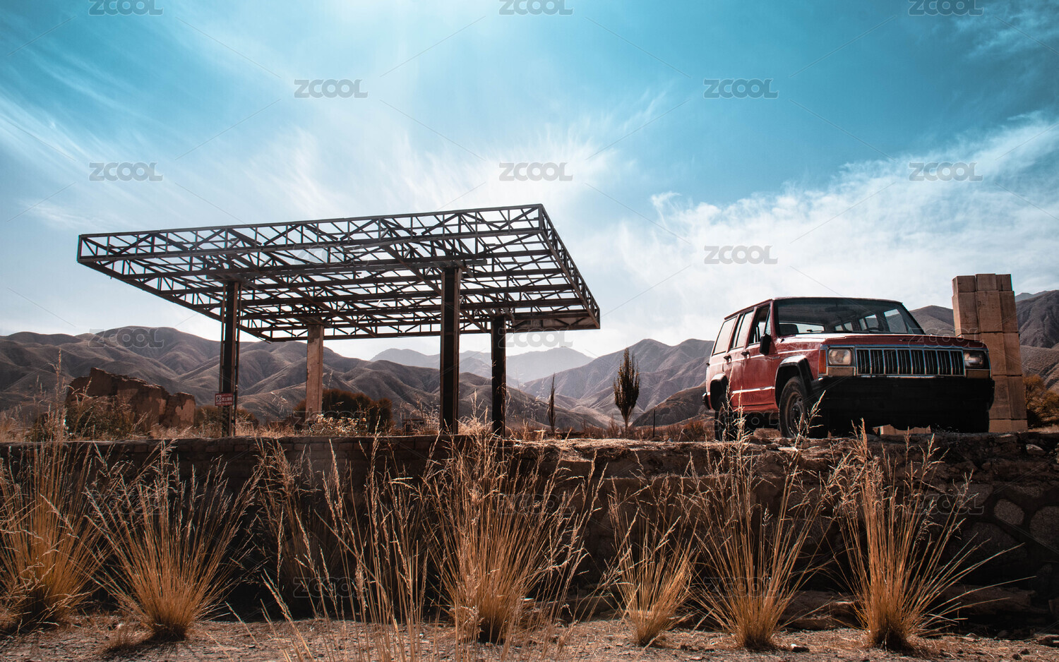 草叢里廢棄的吉普車