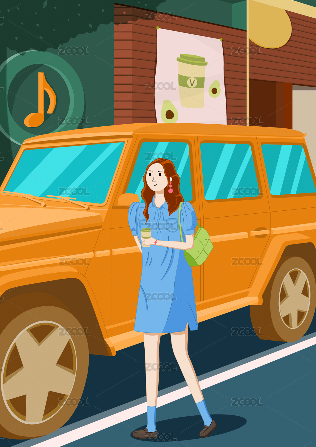 國潮越野汽車插畫