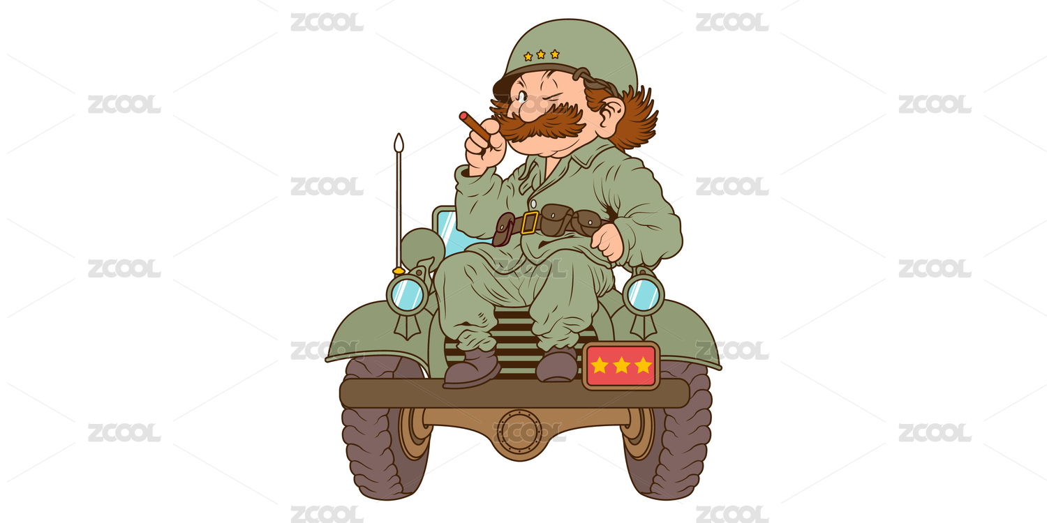 卡通矢量胡子大叔男性士兵坐在卡車上的插畫