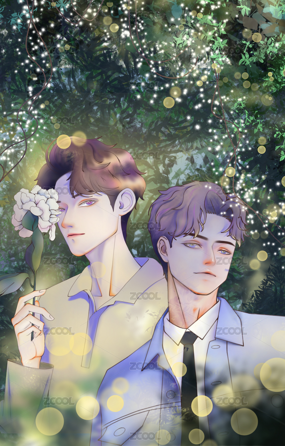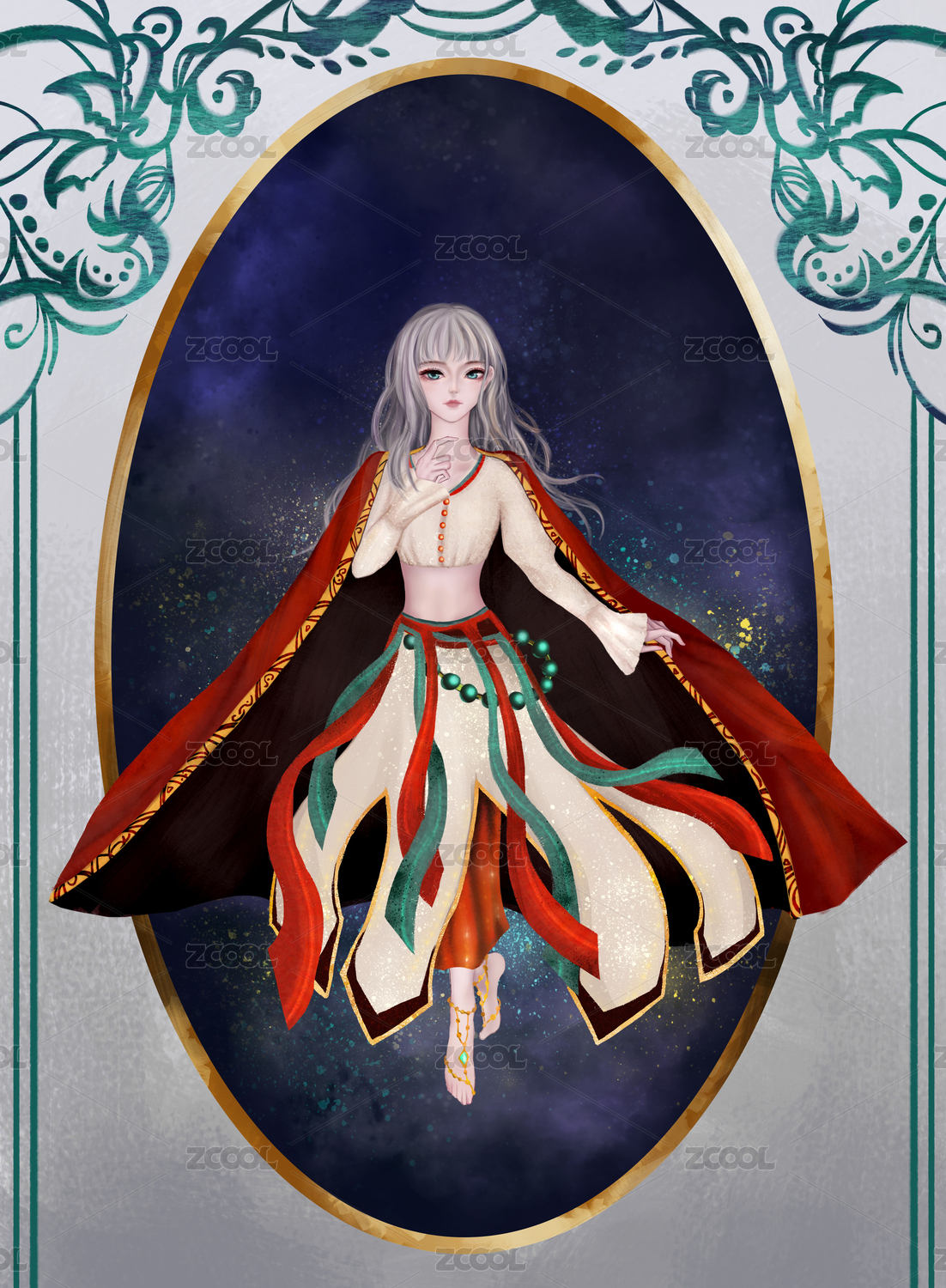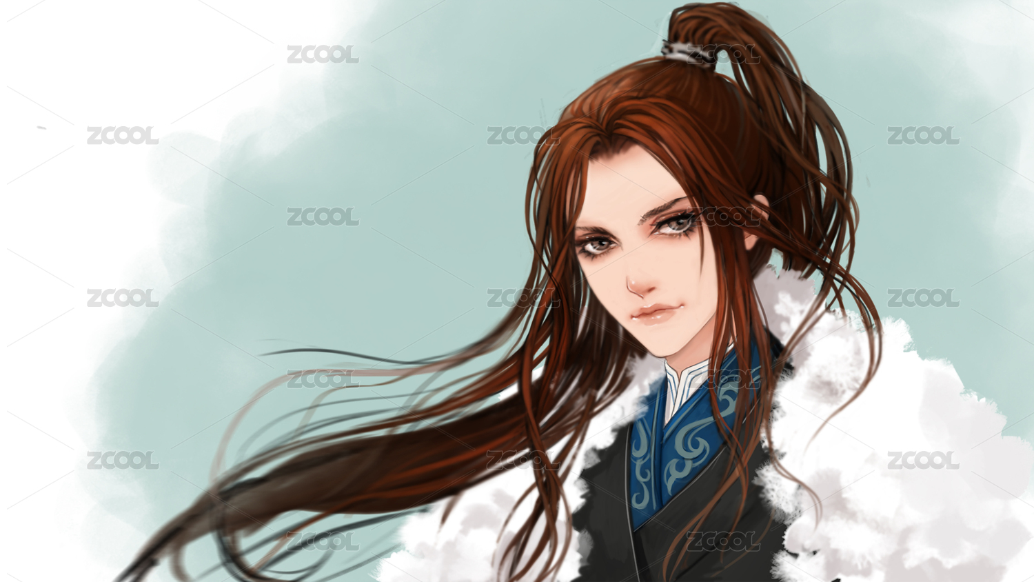國漫風(fēng)披肩古風(fēng)長發(fā)帥哥卡通插畫原畫人物