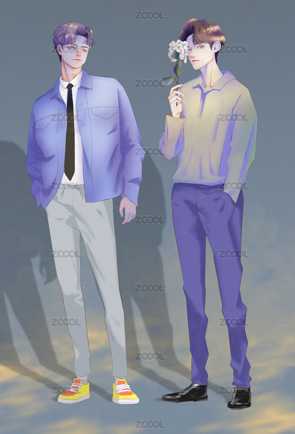 漫畫風(fēng)襯衫西裝短卷發(fā)帥哥卡通原畫插畫素材