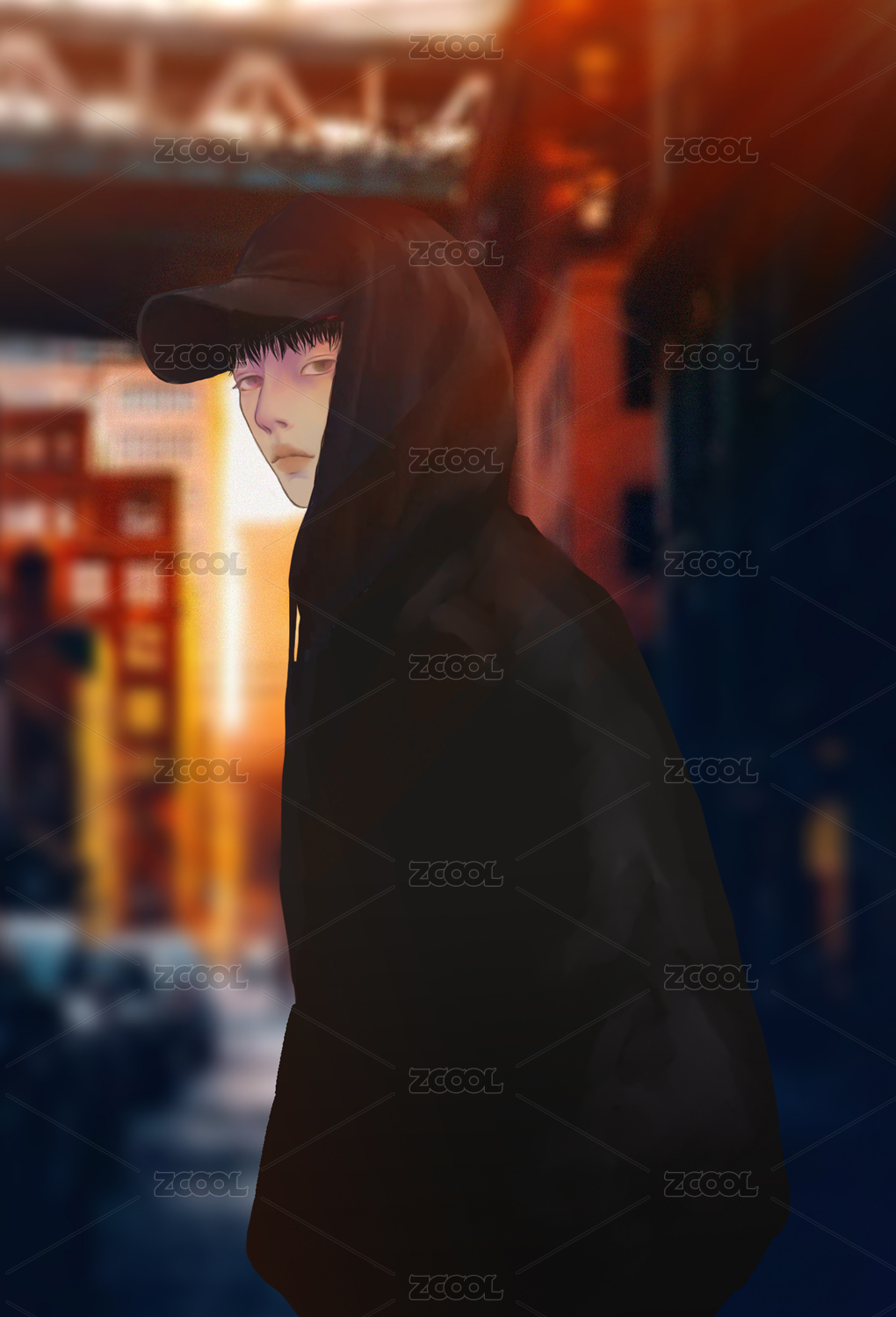 國漫風(fēng)回眸古風(fēng)帥哥卡通插畫原畫男子人物