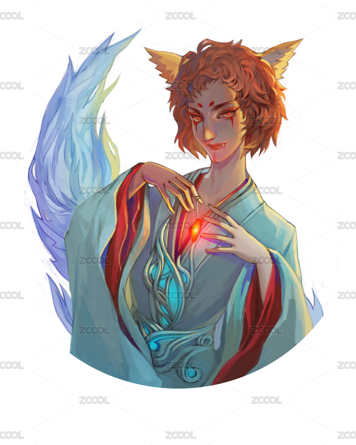 日式狐妖陰柔男生卡通手繪人物原畫插畫