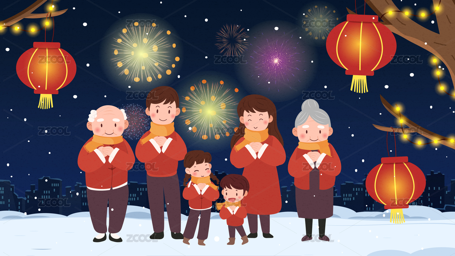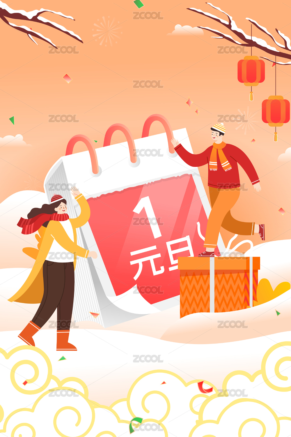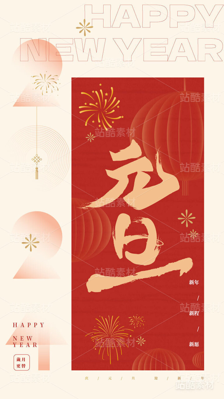 元旦新年紅色線性燈籠喜慶慶祝海報