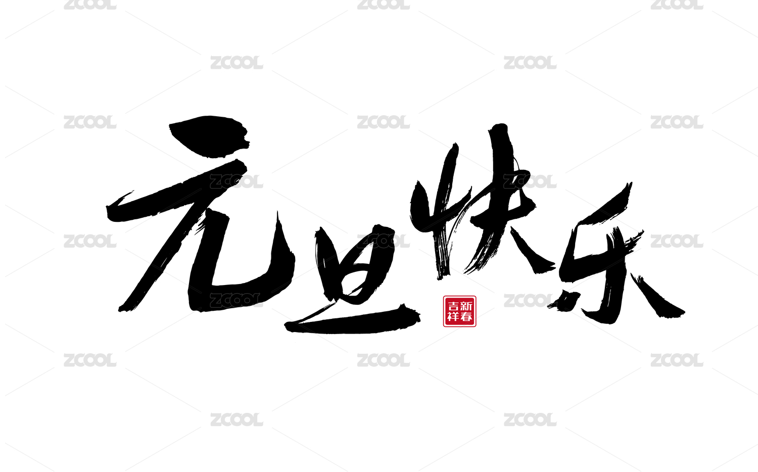 元旦快樂,新年中國風(fēng)手寫書法矢量字體