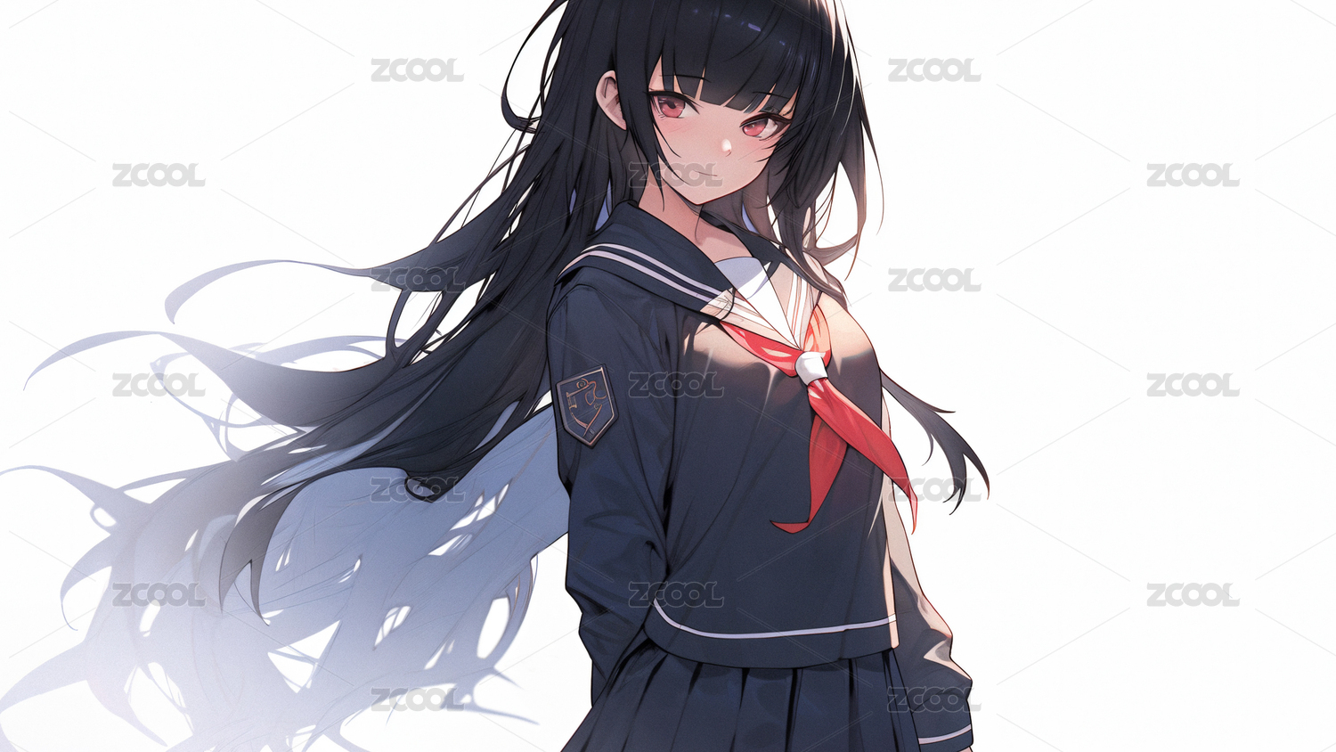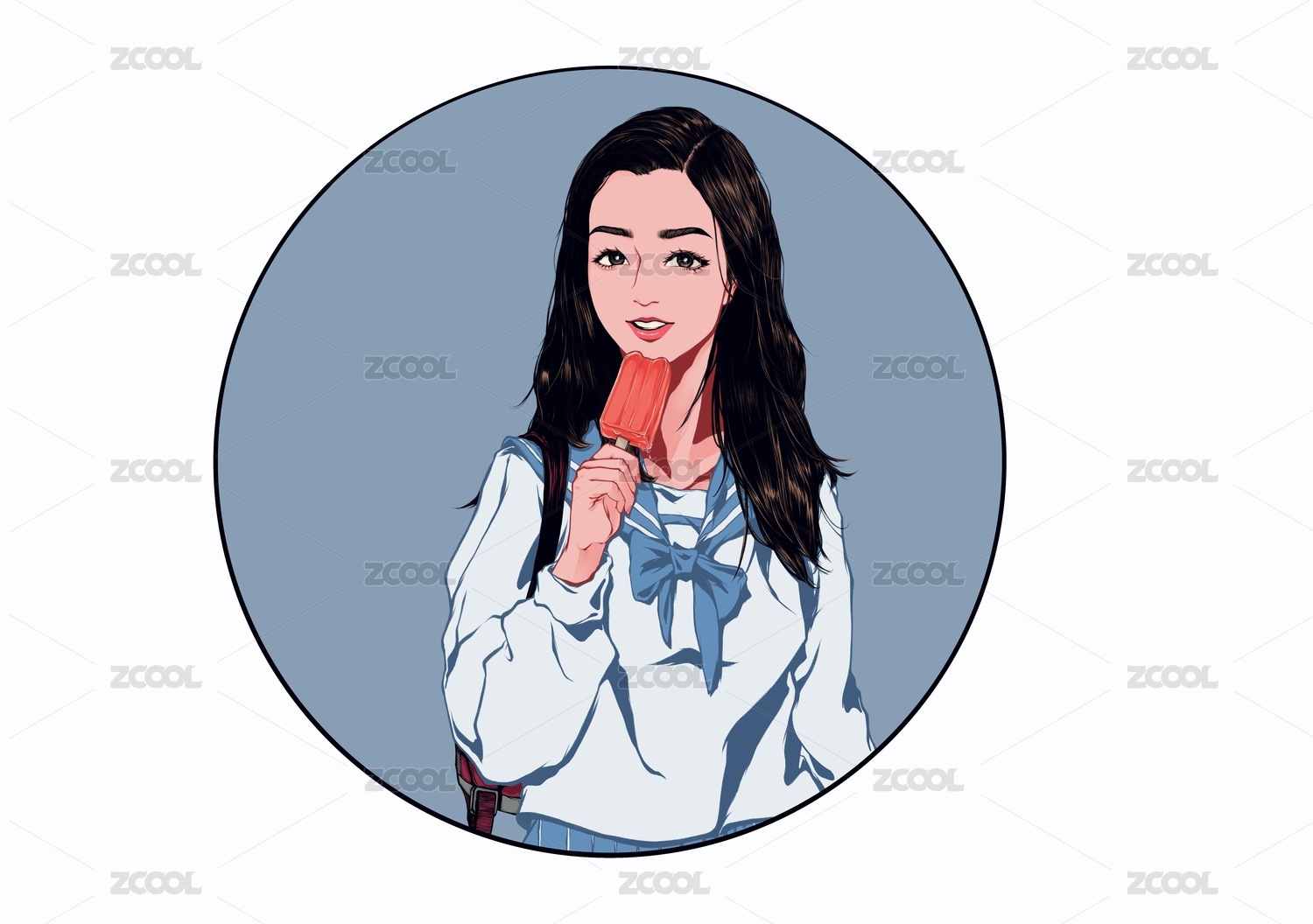 紅色蝴蝶結長發(fā)可愛水手服少女插畫
