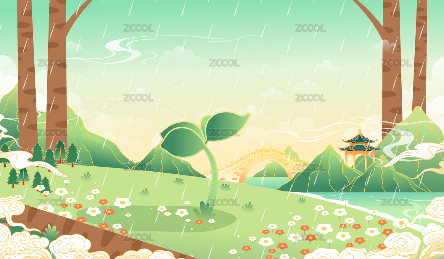 春季里下雨天萌發(fā)新芽的小草