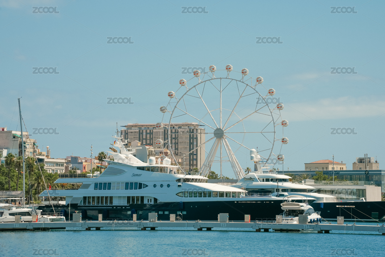 西班牙巴塞羅那港口摩天輪與游艇景觀