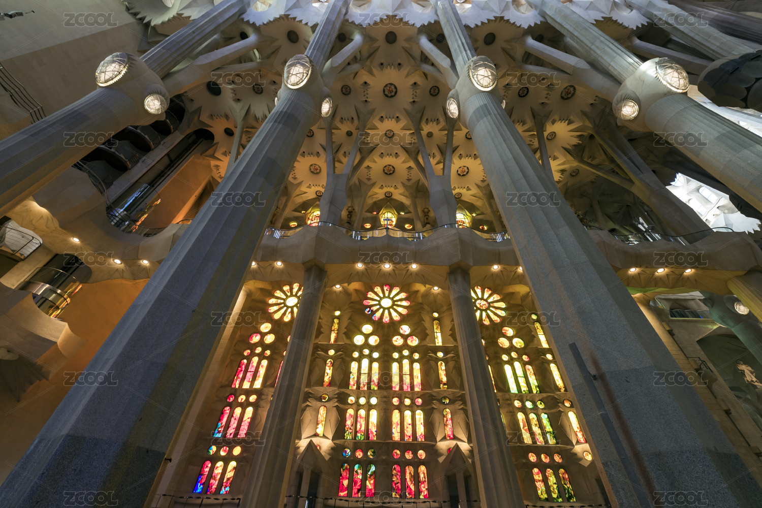 西班牙巴塞羅那圣家堂內(nèi)部景觀
