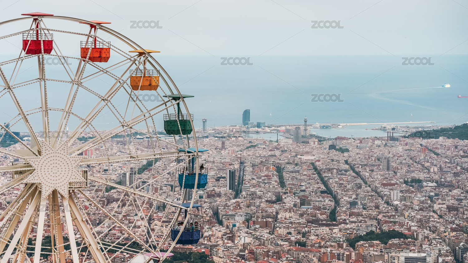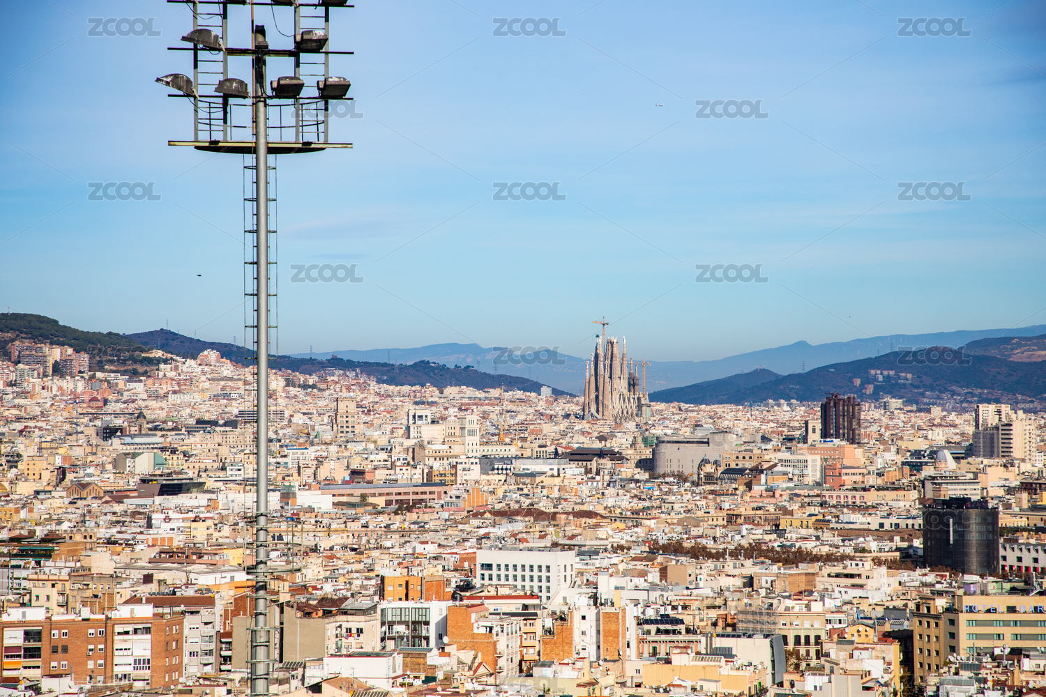 西班牙巴塞羅那城市俯瞰全景