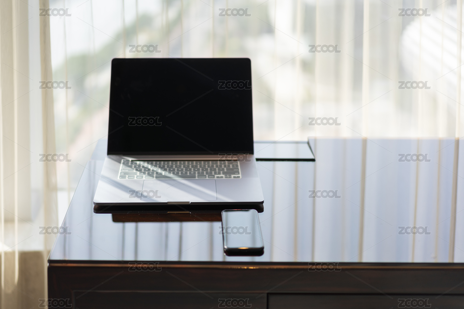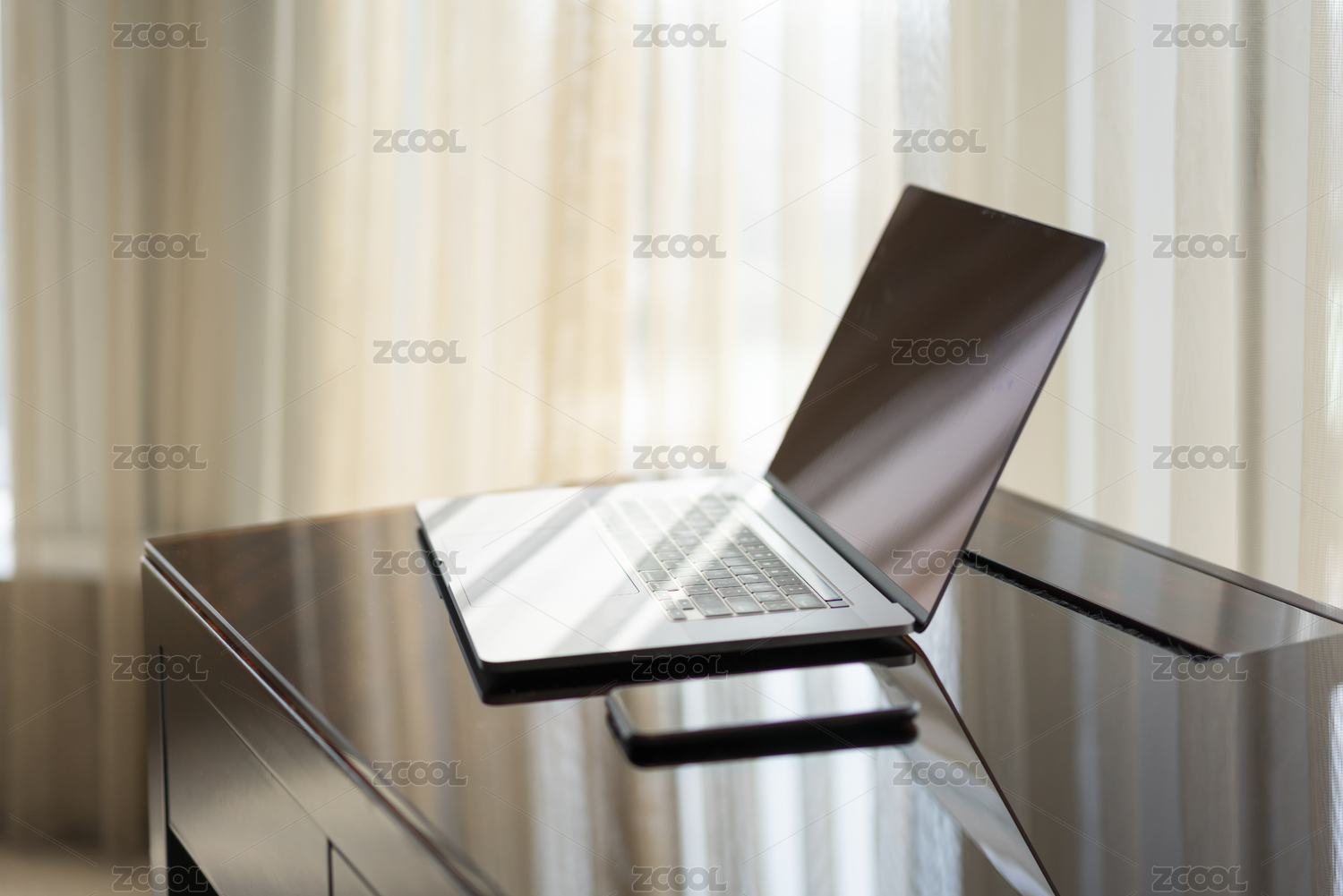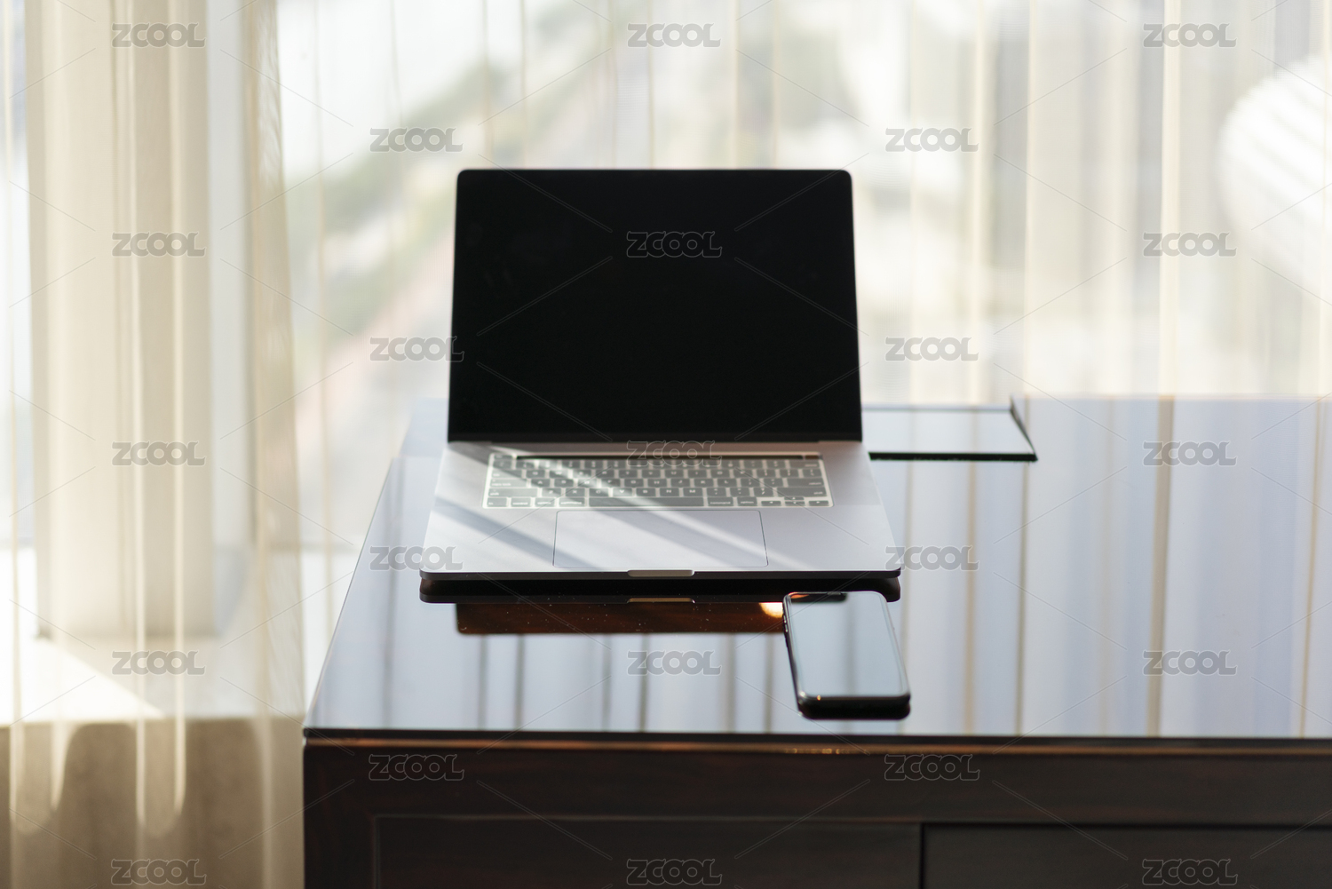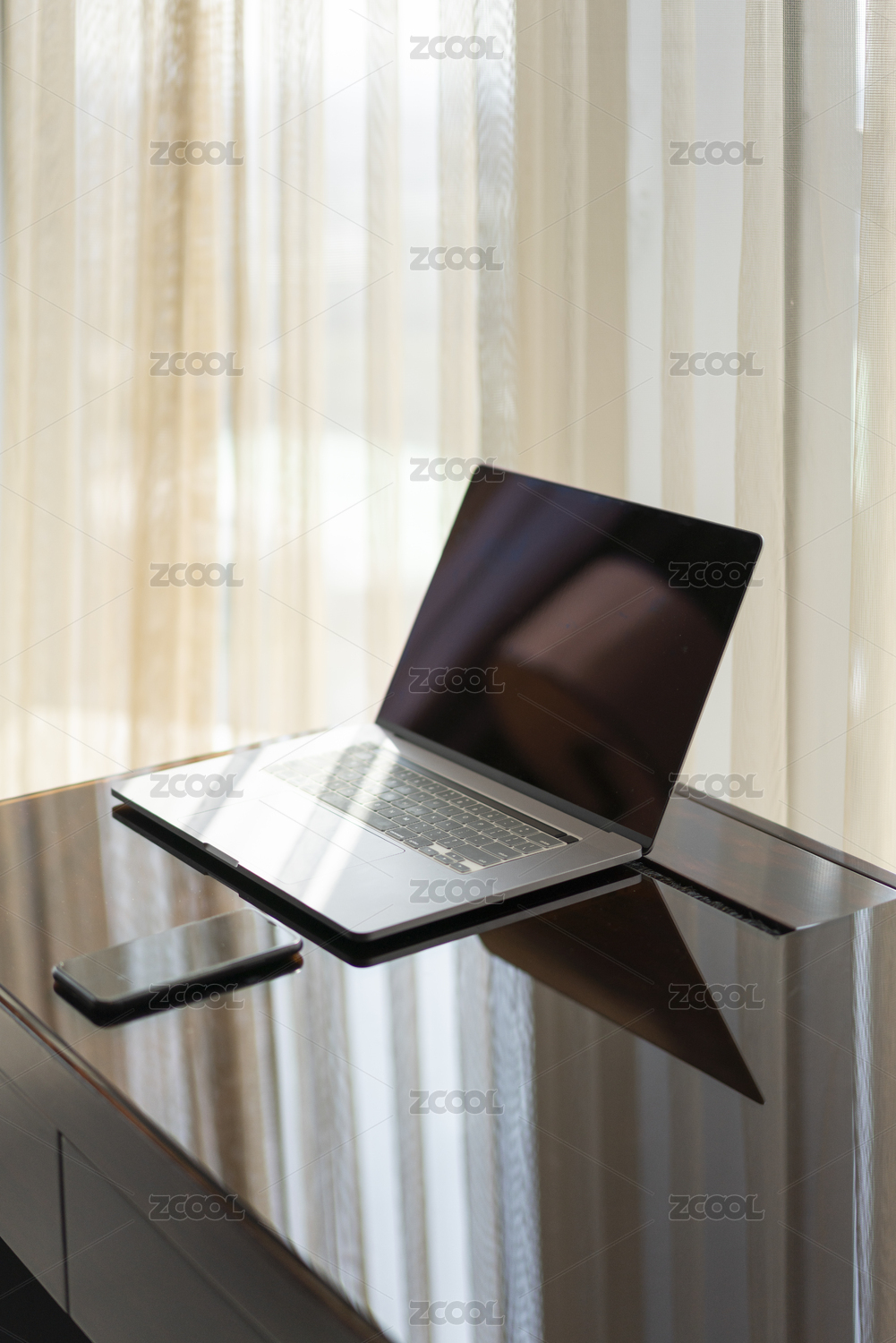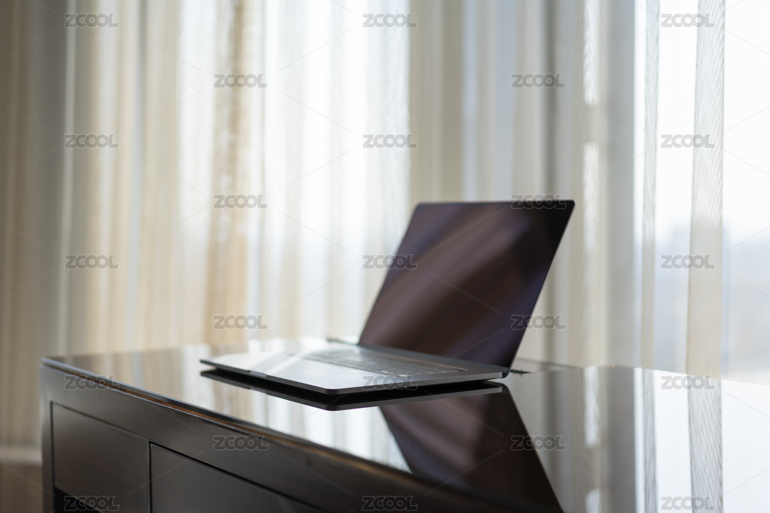 疫情期間居家辦公場所桌面上的筆記本電腦