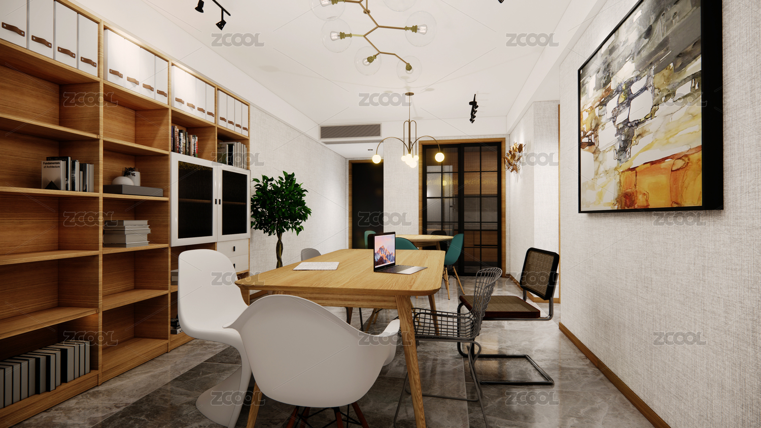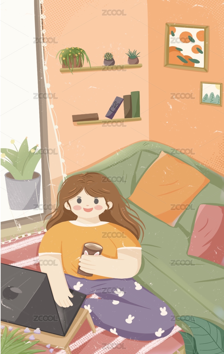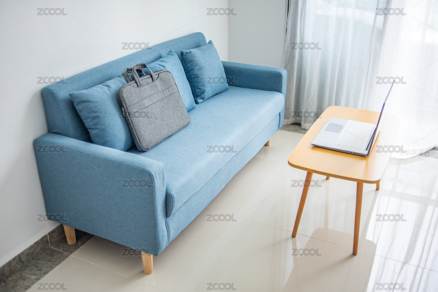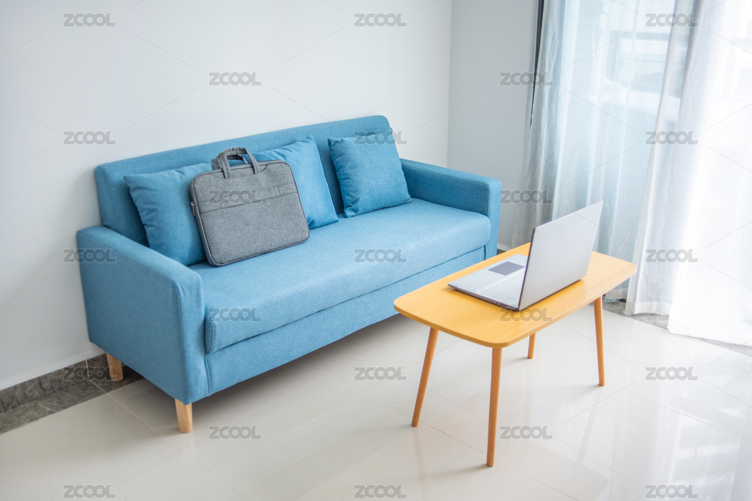 客廳的沙發(fā)和筆記本電腦居家辦公概念圖