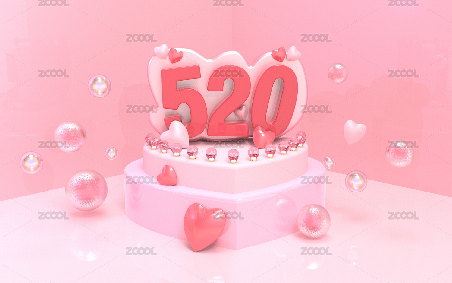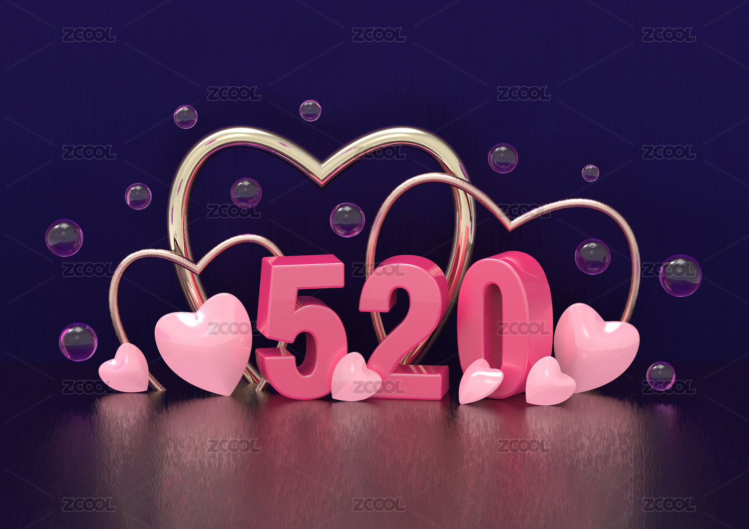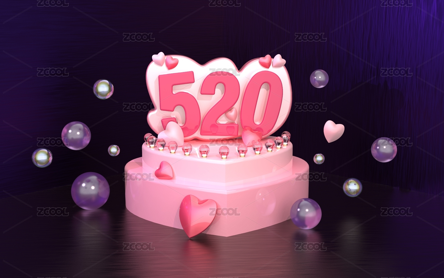 520立體粉色愛心型夢幻泡泡暗色背景展示