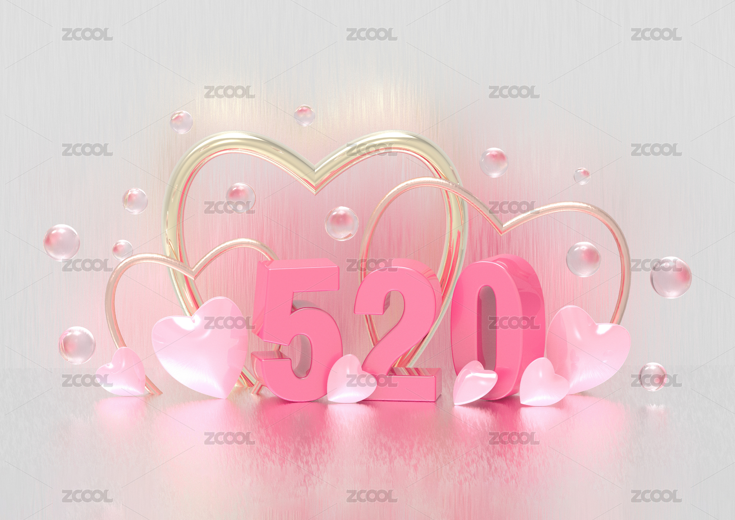 520立體粉色愛心型夢幻泡泡銀色背景展示