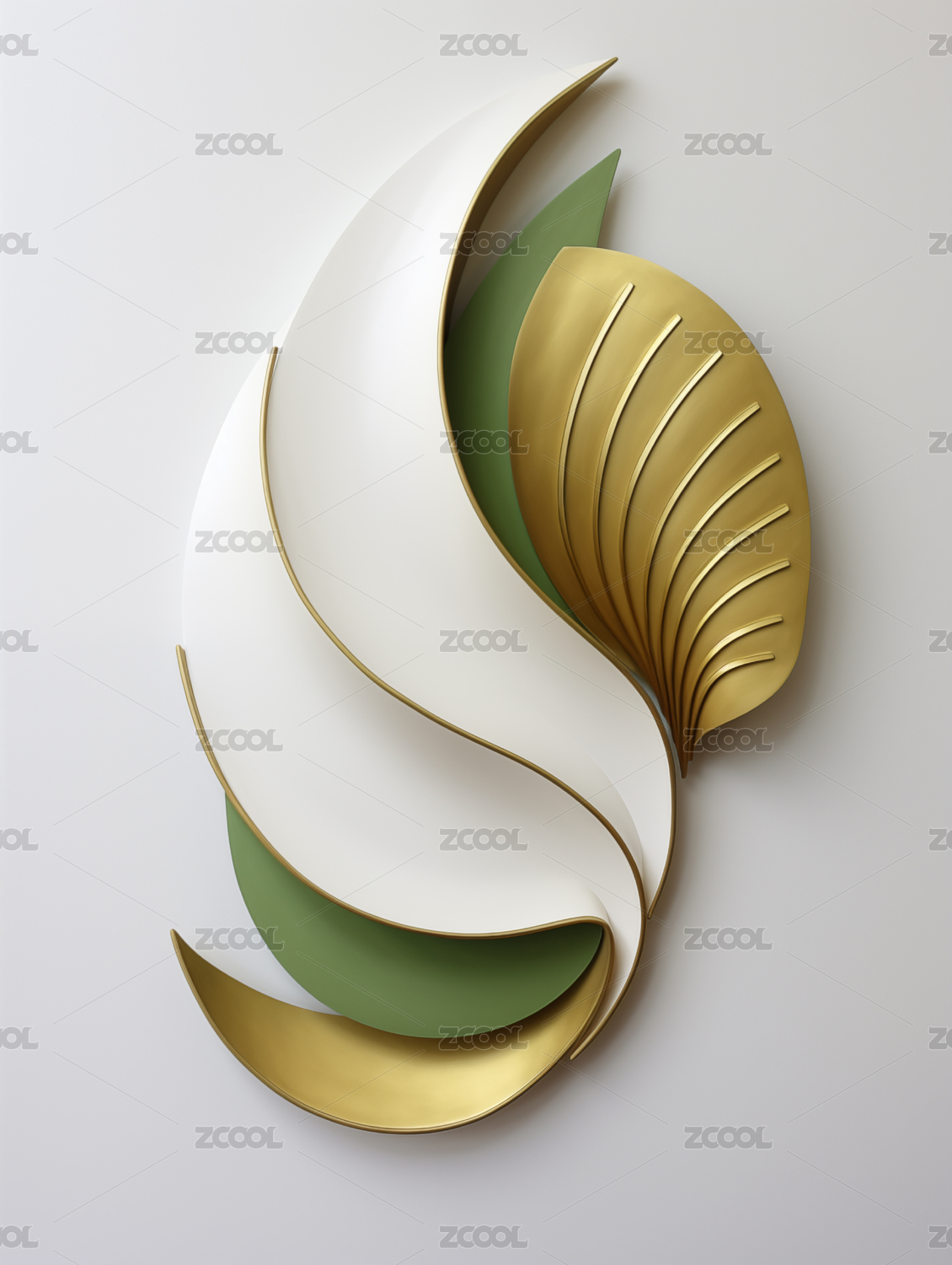 輕奢裝飾畫金色綠色葉子形狀抽象藝術(shù)