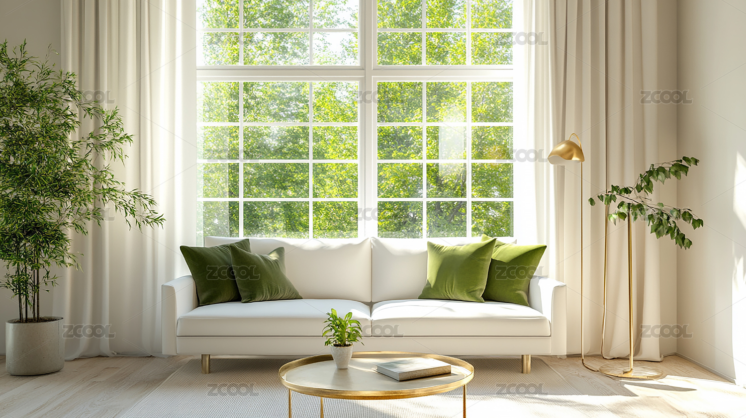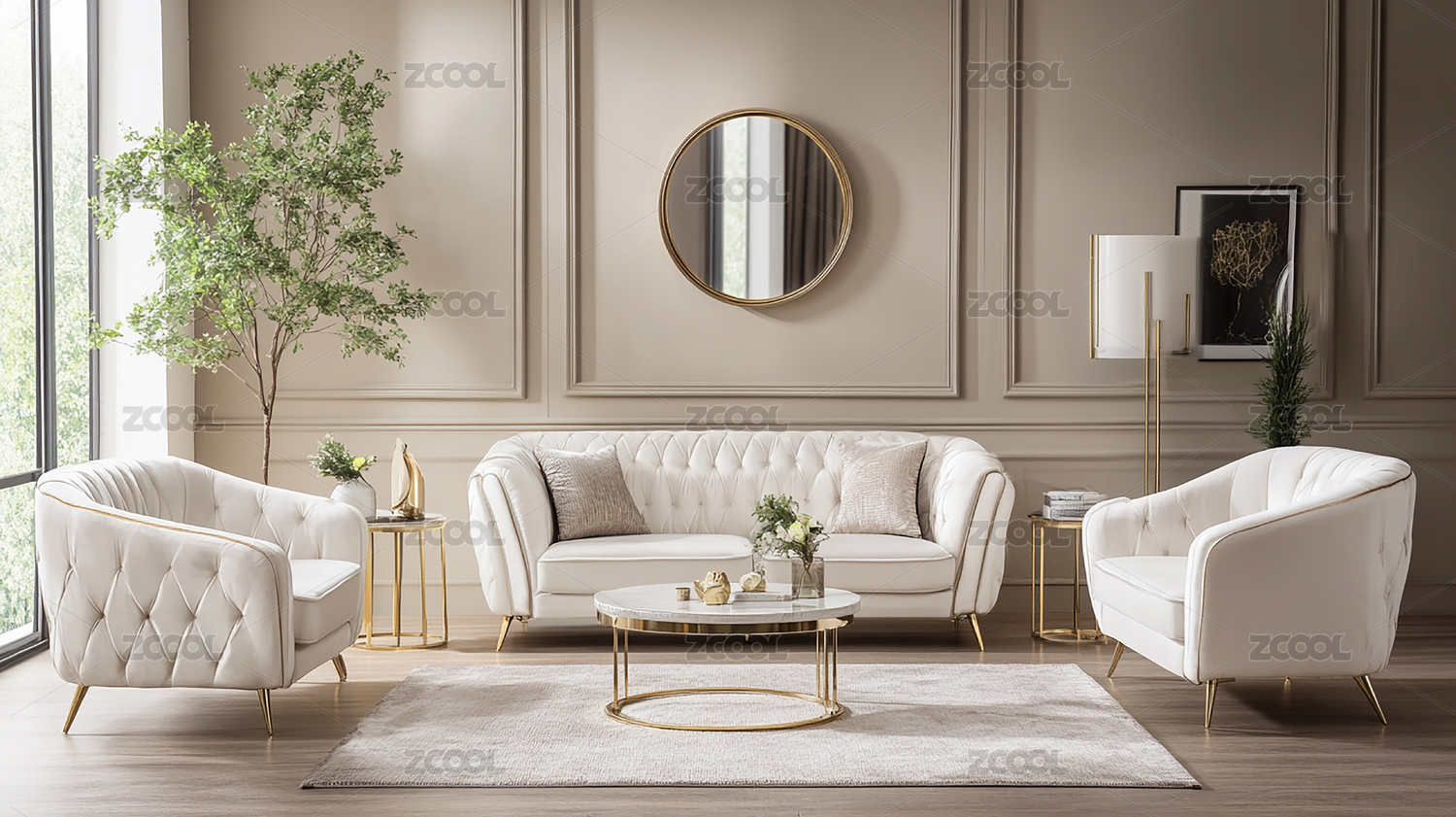 輕奢簡約白色高級感室內(nèi)客廳沙發(fā)布景