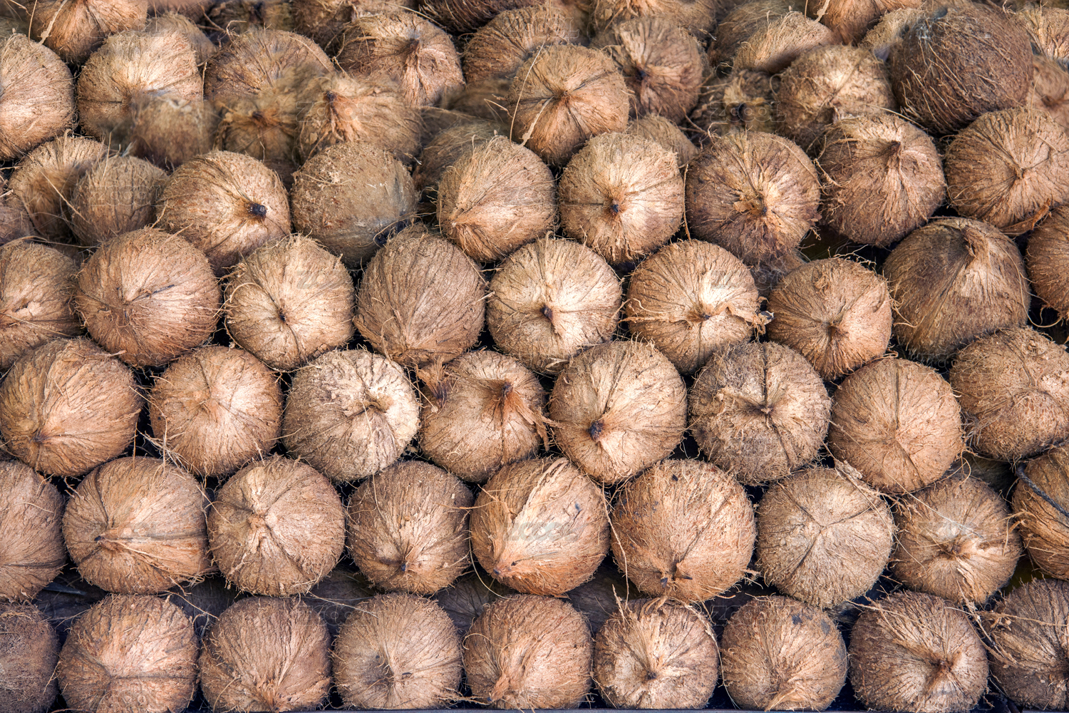海南興隆南國(guó)熱帶雨林游覽區(qū)門前的椰子水果