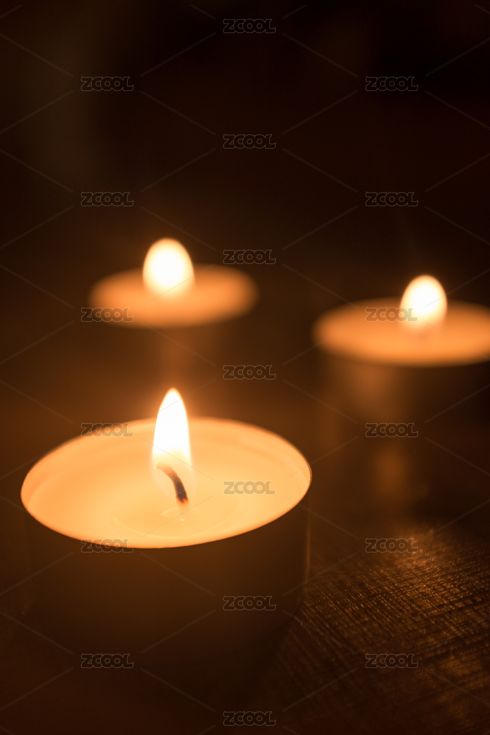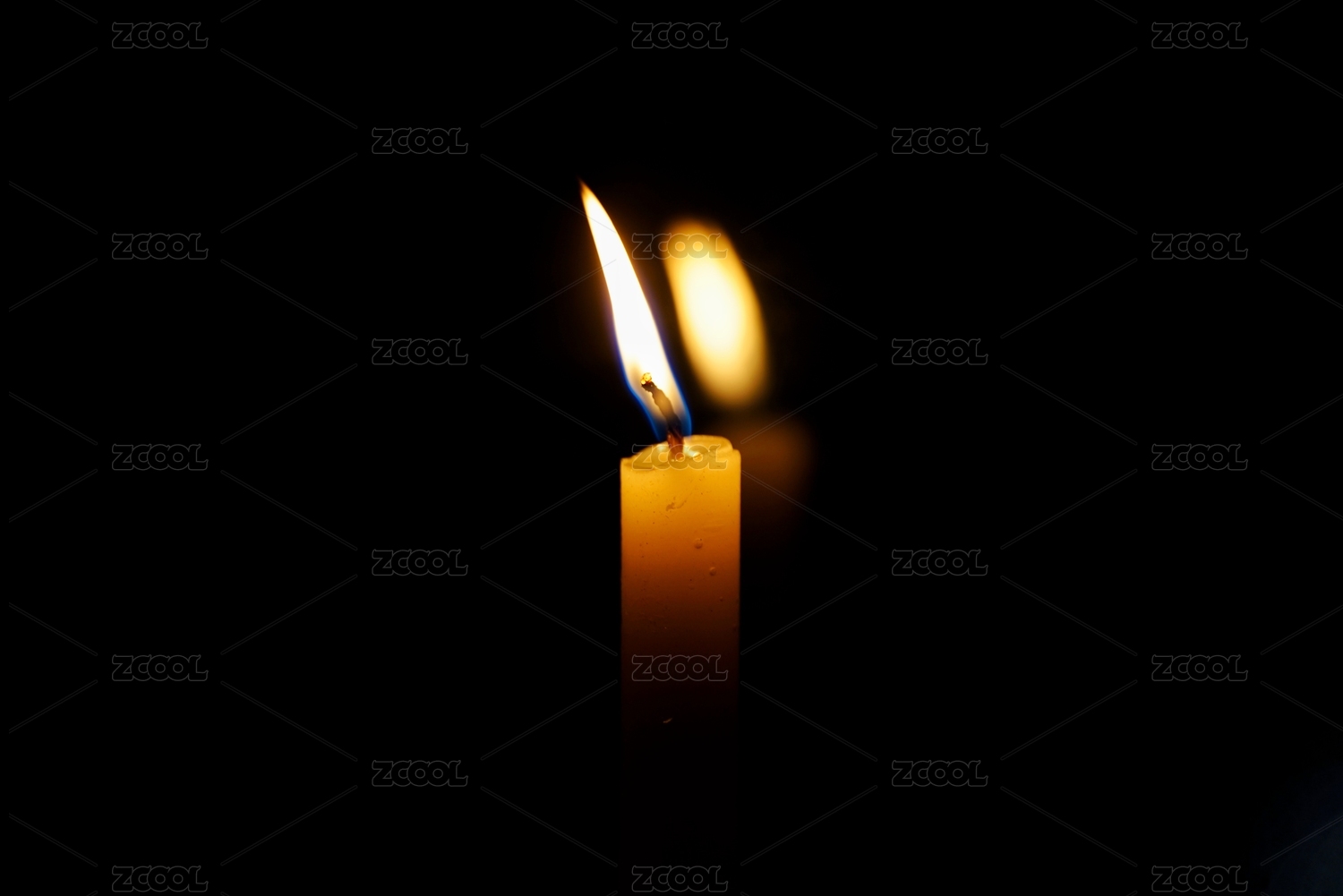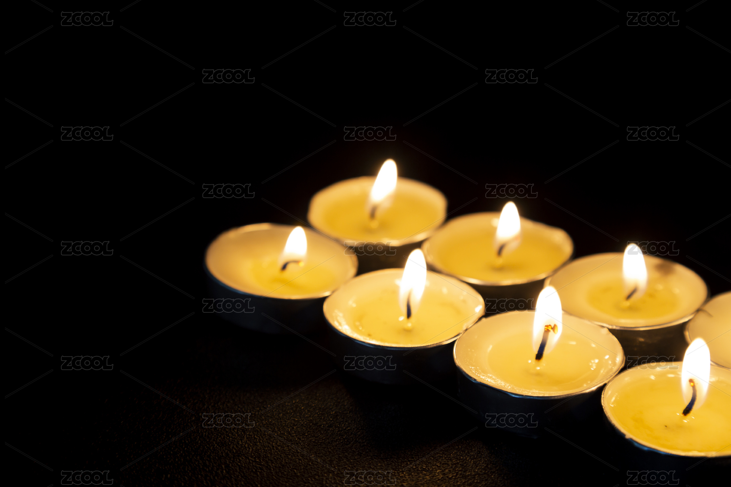 擺放整齊的蠟燭在黑色背景上燃燒,黃色的火焰