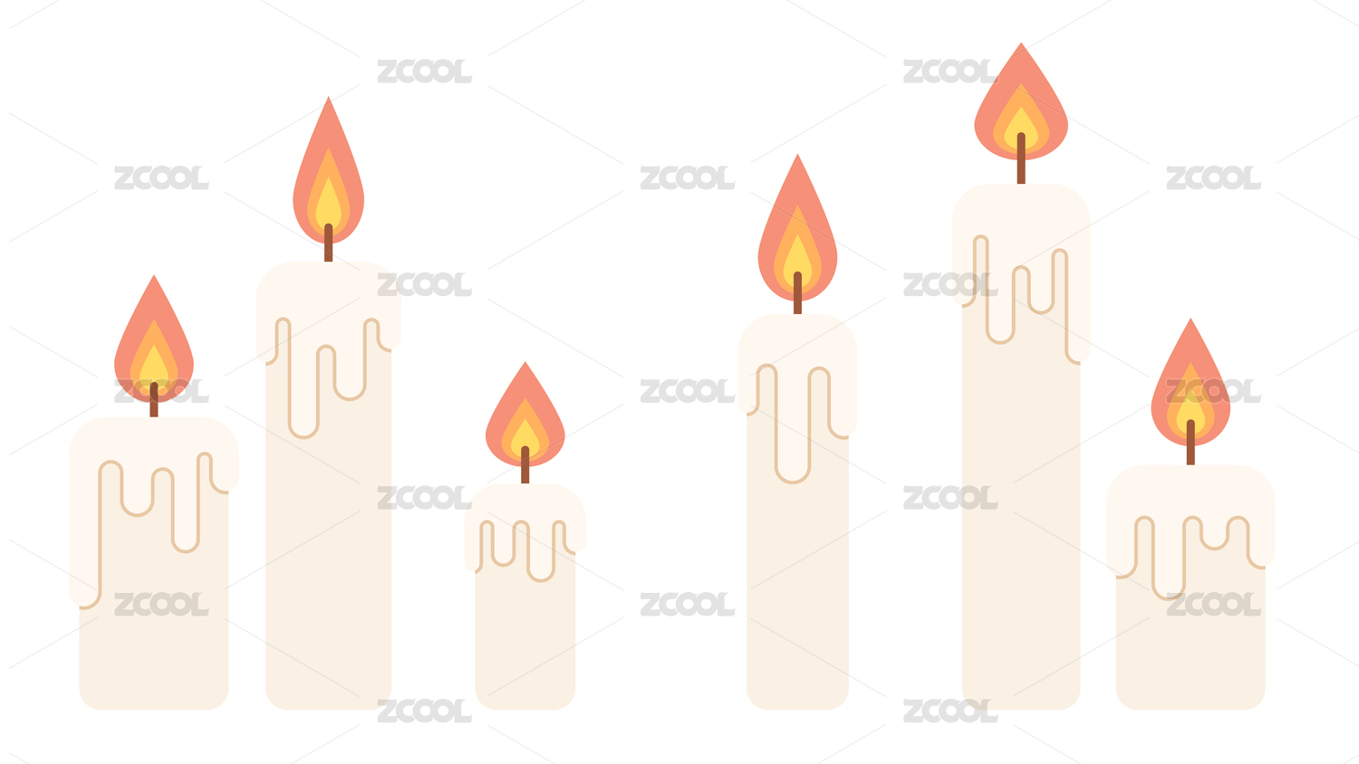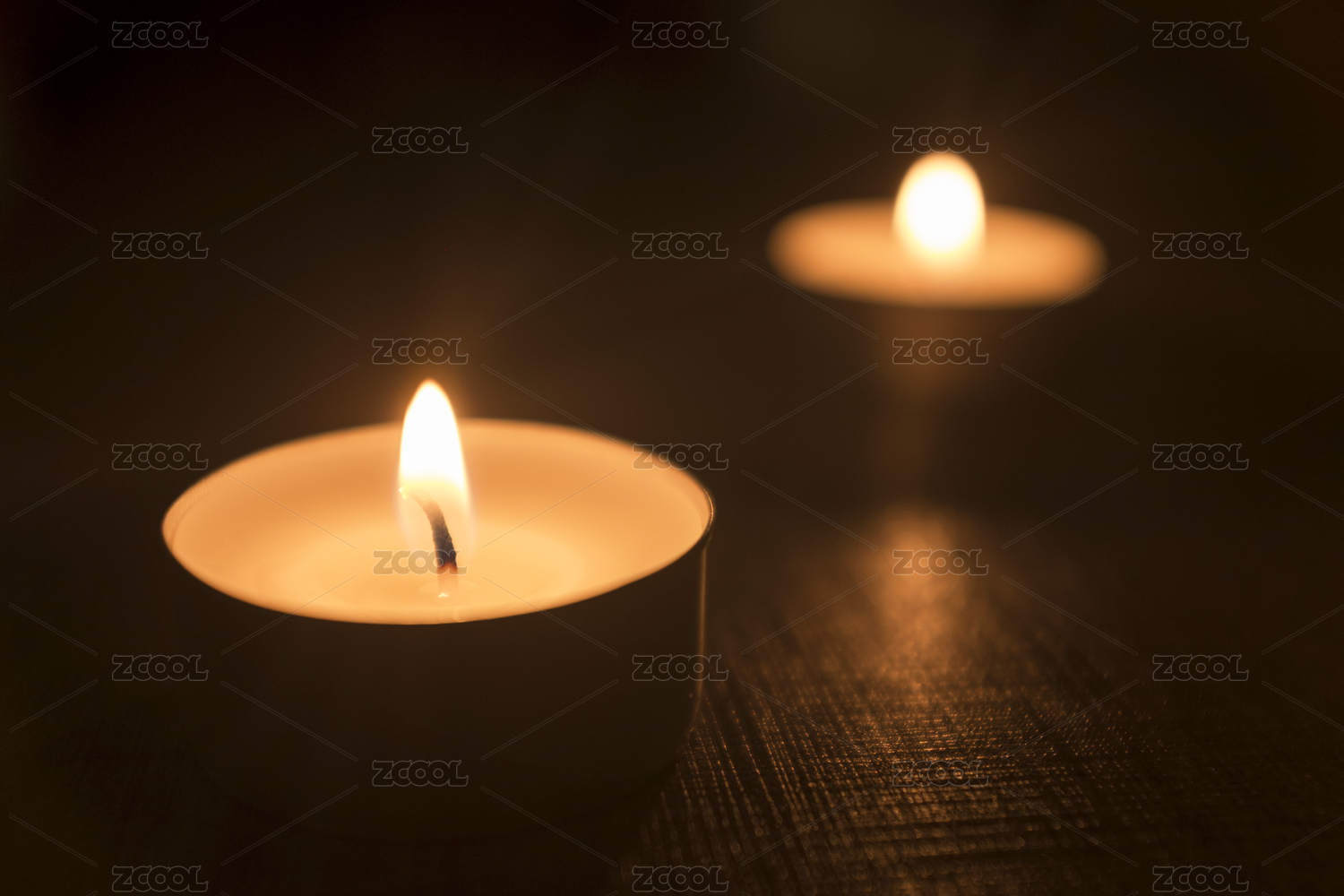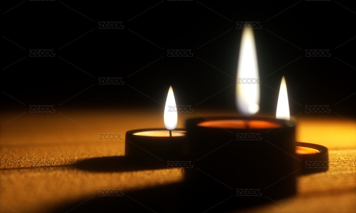 擺放整齊的蠟燭在黑色背景上燃燒,黃色的火焰