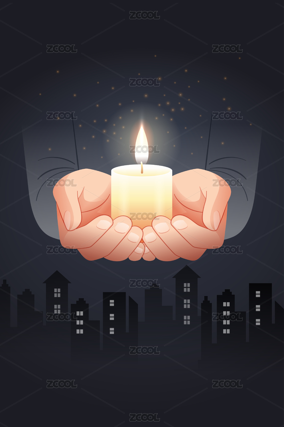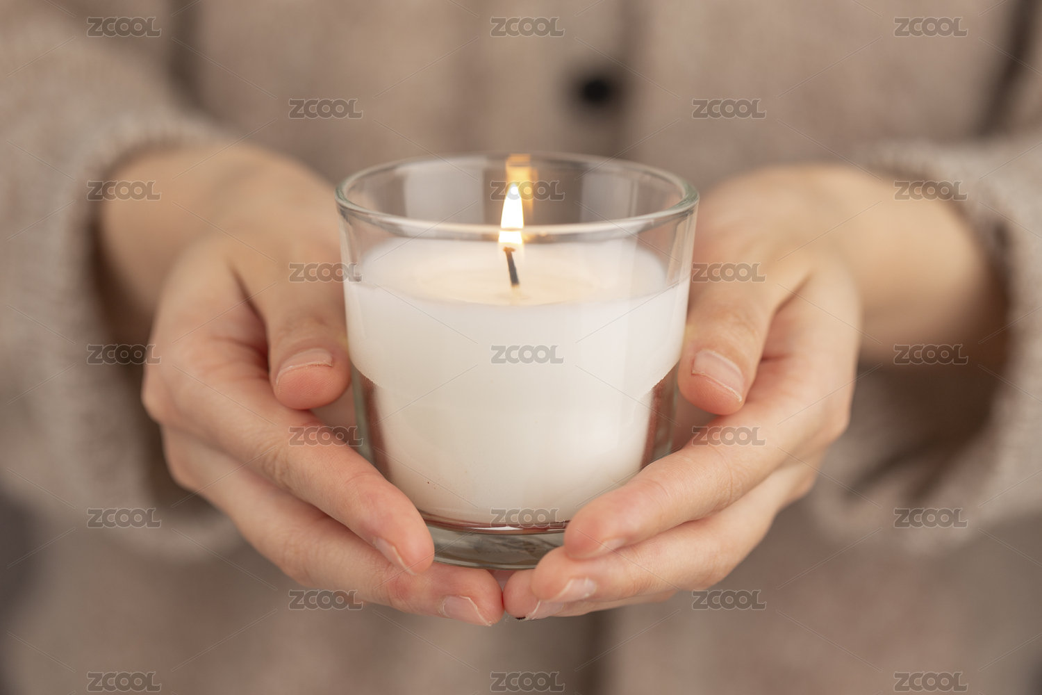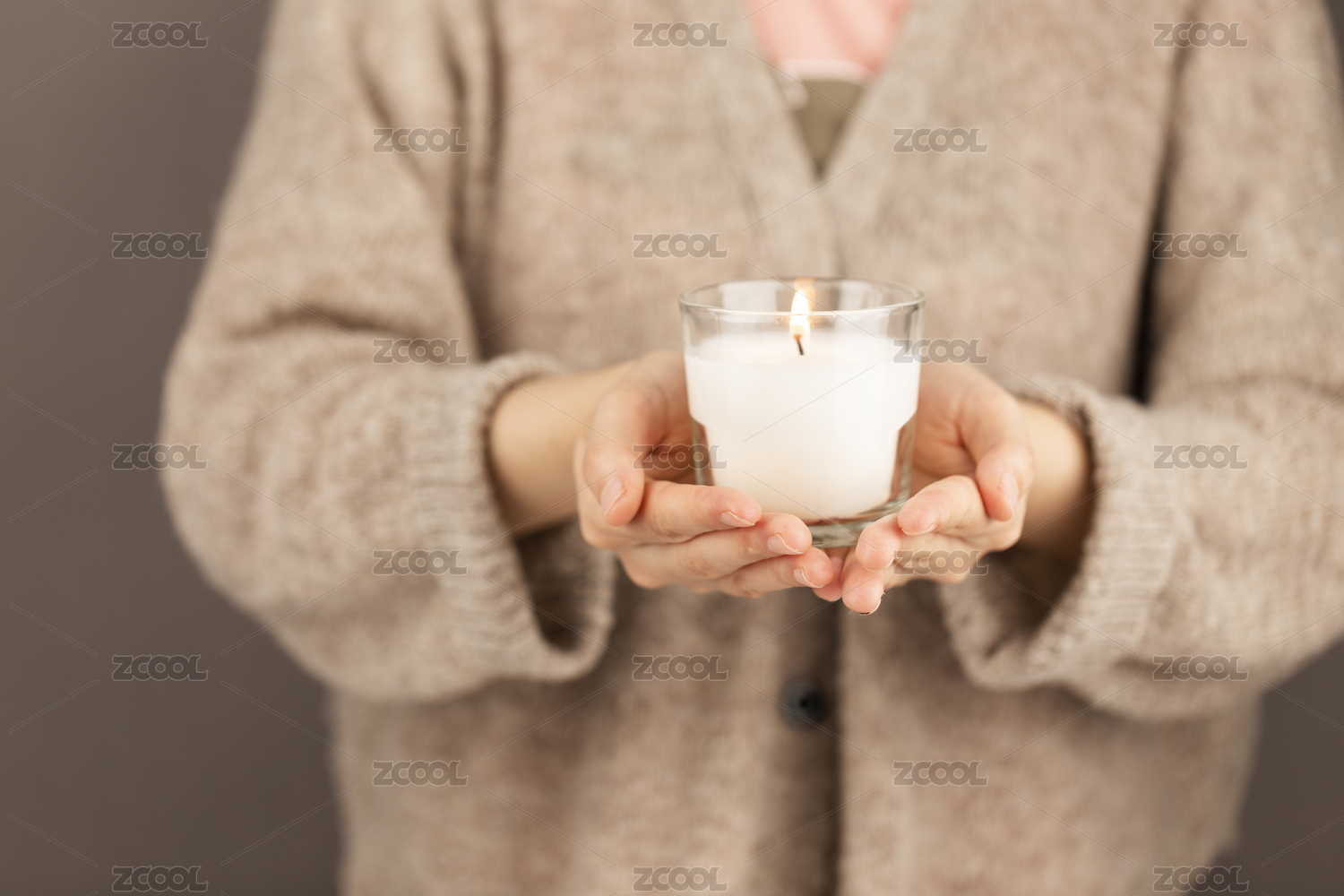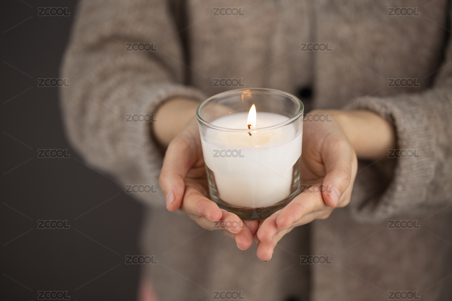 雙手捧著正在燃燒的蠟燭燈祈禱祝福