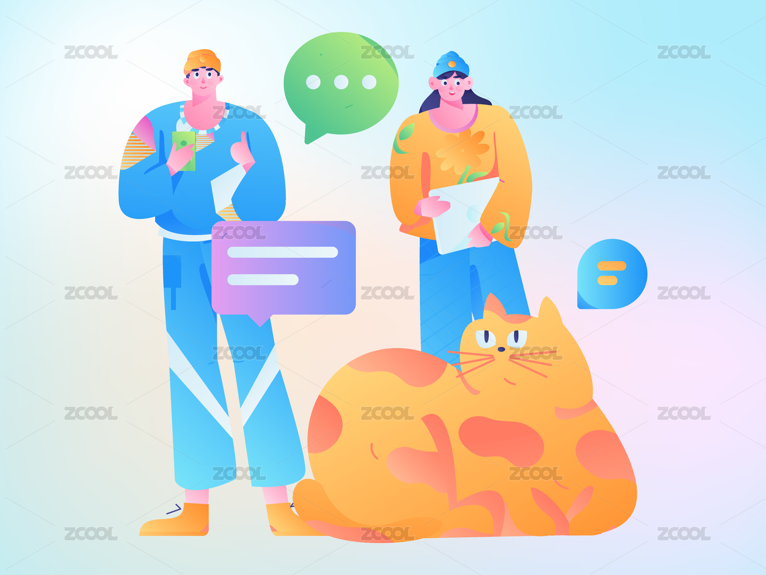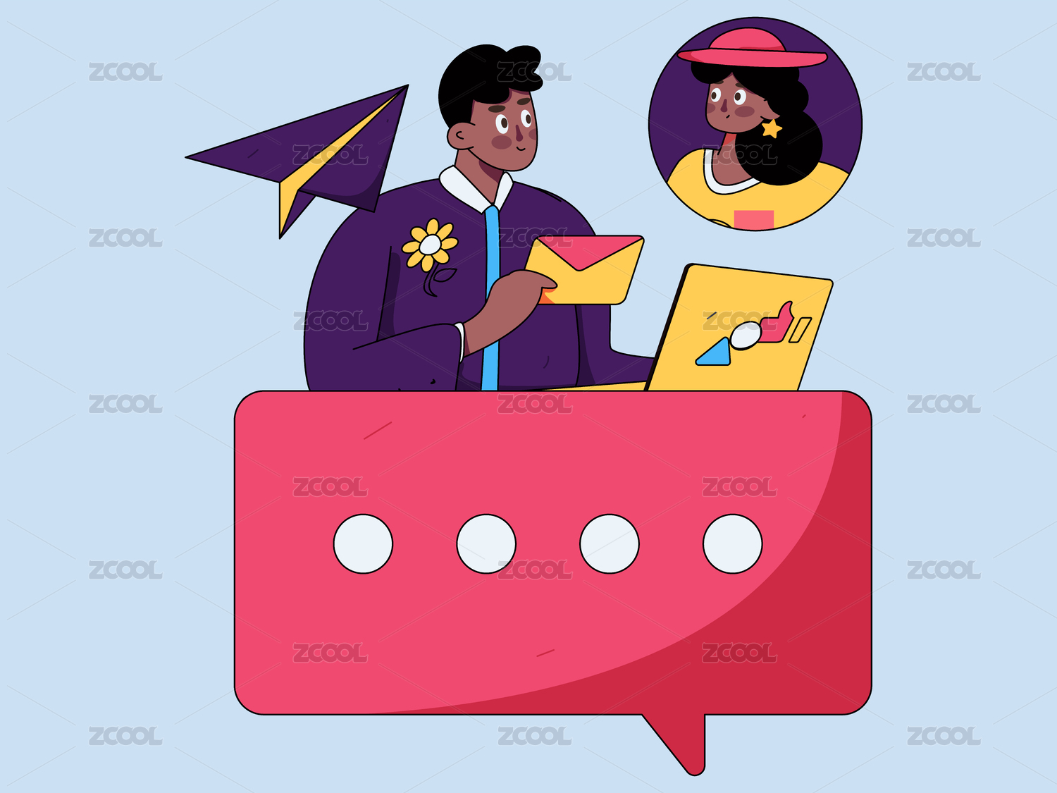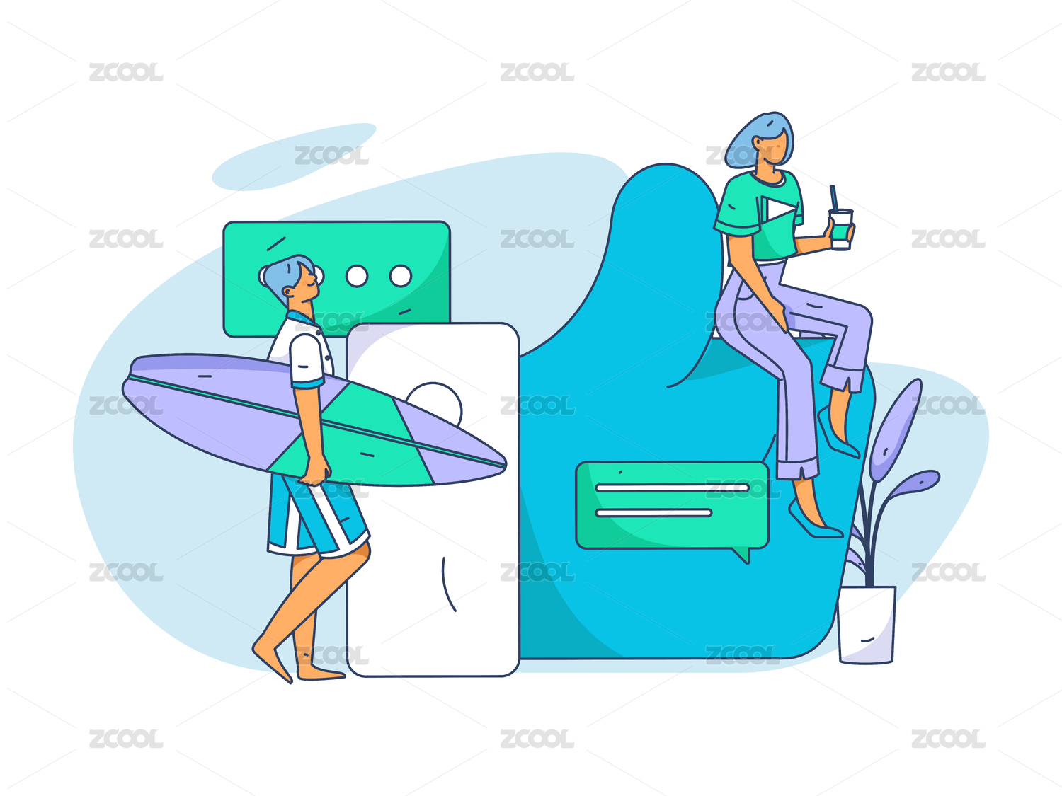虛擬的人物社交溝通概念商業(yè)扁平矢量手繪插