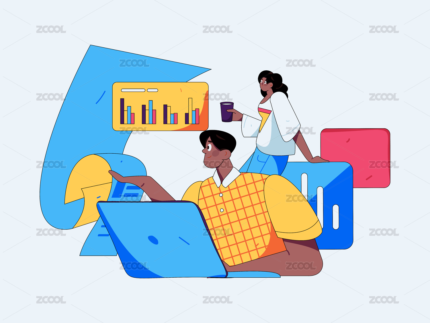 一起溝通協(xié)作的工作方式 矢量人物插畫