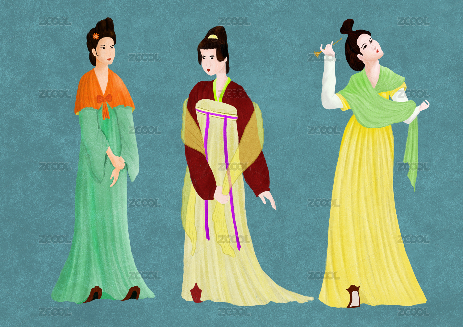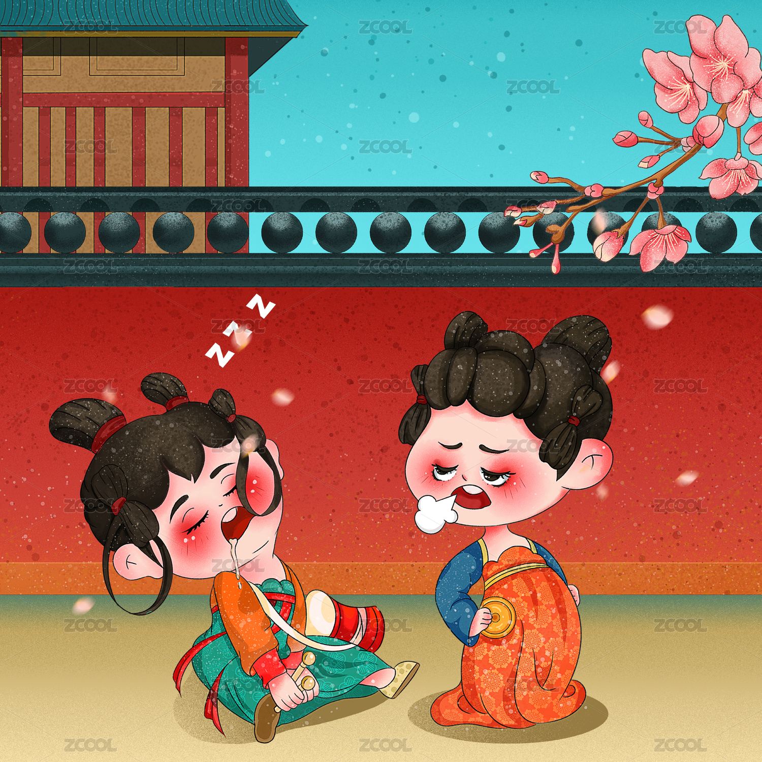 國潮風(fēng)插畫之唐朝仕女歌舞雙人