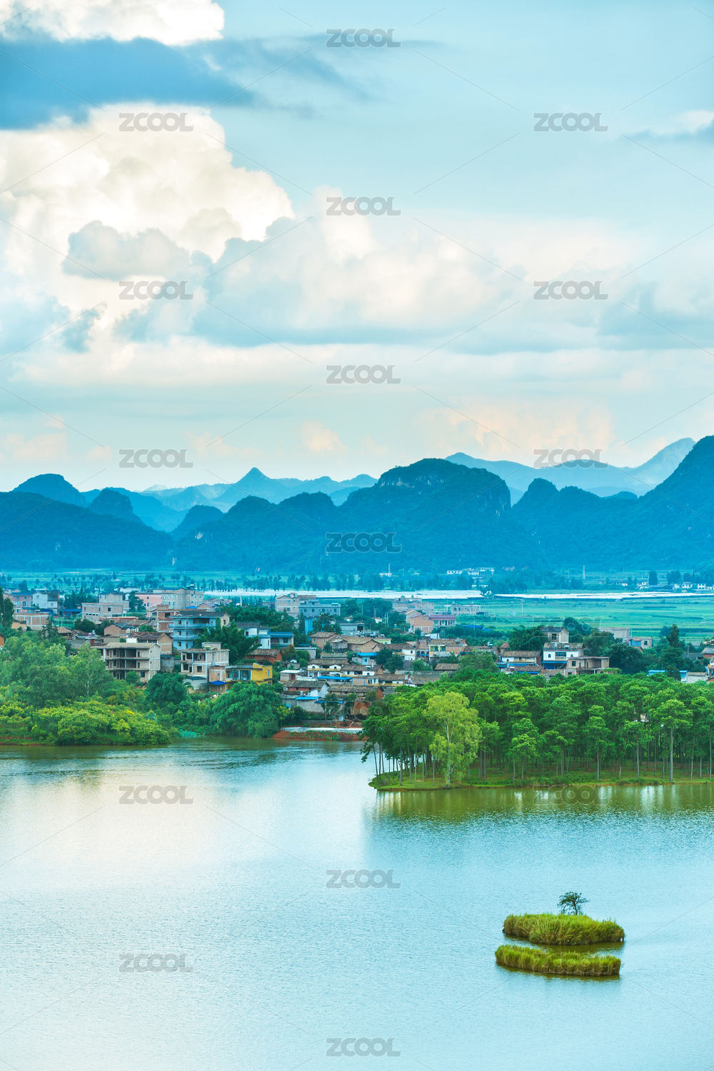 云南普者黑的青龍山頂觀普者黑的風(fēng)光全景