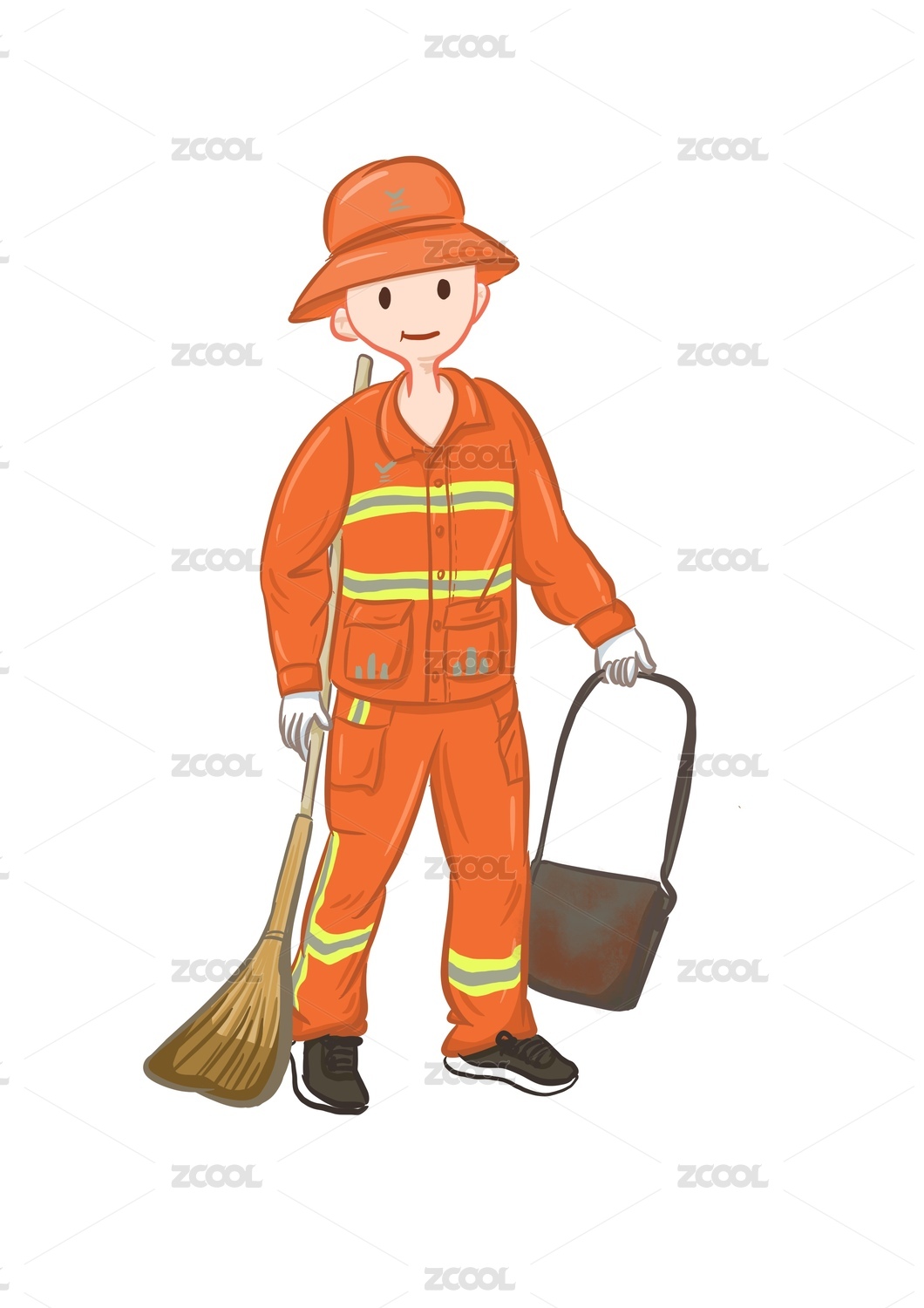 手繪清潔工卡通人物
